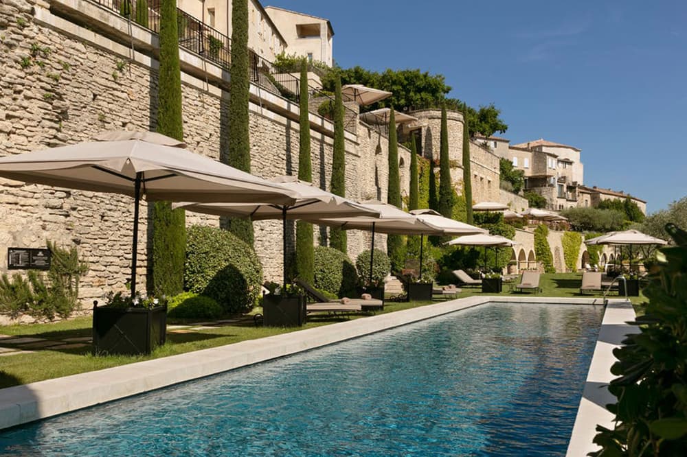 "Offering breathtaking views of the mountains of Gordes, Airelles is a spa hotel located in one of the most beautiful villages in France. Here, you’ll find olive groves, cypress trees and lavender fields, all perfect backdrops for your travel snapshots. The site features everything from a classic village-style bedroom, to a private villa with a swimming pool."