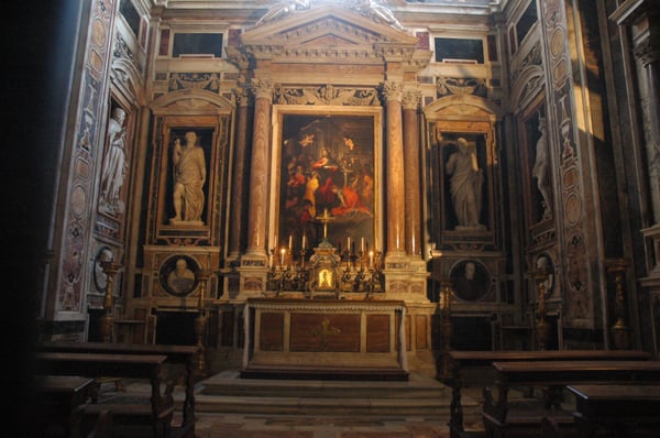 "The Basilica of Santa Maria Sopra Minerva Just behind the Pantheon hides the church of Santa Maria Sopra Minerva, a gem in its own right. The only Gothic church in Rome's center, it's a breath of fresh air from over-the-top Baroque opulence. Plus, it has gorgeous frescoes by Filippo Lippi (an early Renaissance master), the body of Italy's patron saint Catherine of Siena, the tomb of painter Fra Angelico, and a statue done—at least partly—by Michelangelo himself."