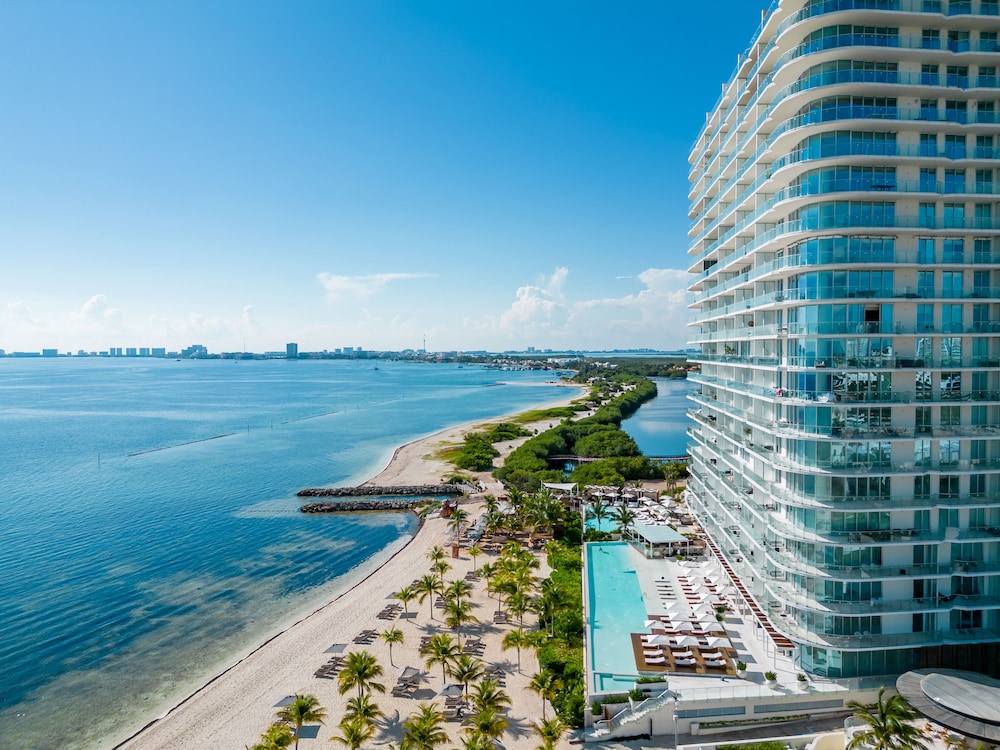 Luxury resort with serene design, infinity pools, gourmet dining, and spa.