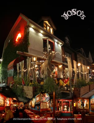 "Joso’s Tucked away off Yorkville’s main thoroughfare, Joso’s is one of the city’s classic dining destinations. Take one stepinside the doors and you'll understand its appeal. The rooms are filledwith art—photographs, paintings, and many rather voluptuoussculptures. Spanning two floors of a narrow house, the space feels like an eccentric friend’s home, which makes for acharming backdrop for the seafood fare. Order calamari and tiger prawns to start before moving on to their signature risotto nero —risotto blackened with cuttlefish ink—and some grilled fish."