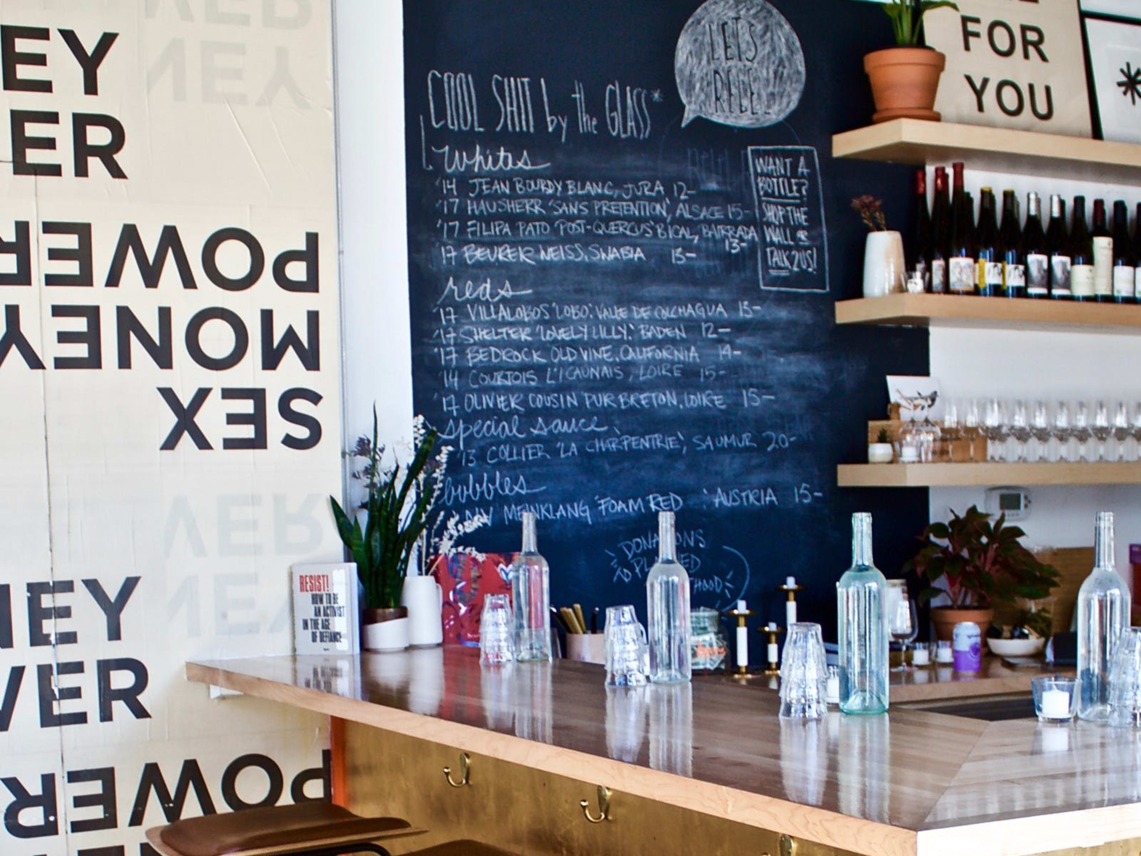 "The mark of a really good spot is if, while on vacation, you go back again. During our one-and-a-half days in Boston we went here twice.Rebel Rebelcalls itself a “feminist natural wine bar,” and their cool zines, “SEX, MONEY, POWER” artwork, and all-female-identifying staff suggests that they are. Their by-the-glass list is great, and if you’d like to buy a bottle you can consult one of women behind the bar for guidance. Rebel Rebel sits inside of Bow Market, an actually cool version of the strip mall you grew up with in the suburbs. Grab food from any of the different restaurants that make up the complex and bring into the bar to eat while you sip—like bibimbap made from local ingredients paired with a glass of Austrian Riesling." - ByEmily Schultz