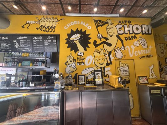 "It's hard to miss the lively Palermo corner with bunches of sausages hanging in the window. The walls are covered in bright yellow chorizo cartoon pop art, designed by local artist Alan Berry Rhys. If you love the choripán , you'll probably fall hard for Chori, which puts a modern twist on the classic sausage sandwich. The menu might only have a handful of choripán options, but it's hard to choose which sandwich reigns supreme. If you're a chori virgin, go with the ahumado , a classic smoked chorizo served on cheese bread and topped with mushrooms, lettuce, orange and garlic mayo. If this isn't your first time at the chori rodeo, try one of their inventive creations like pork sausage with kimchi, or the wild boar with pickled vegetables." - Allie Lazar