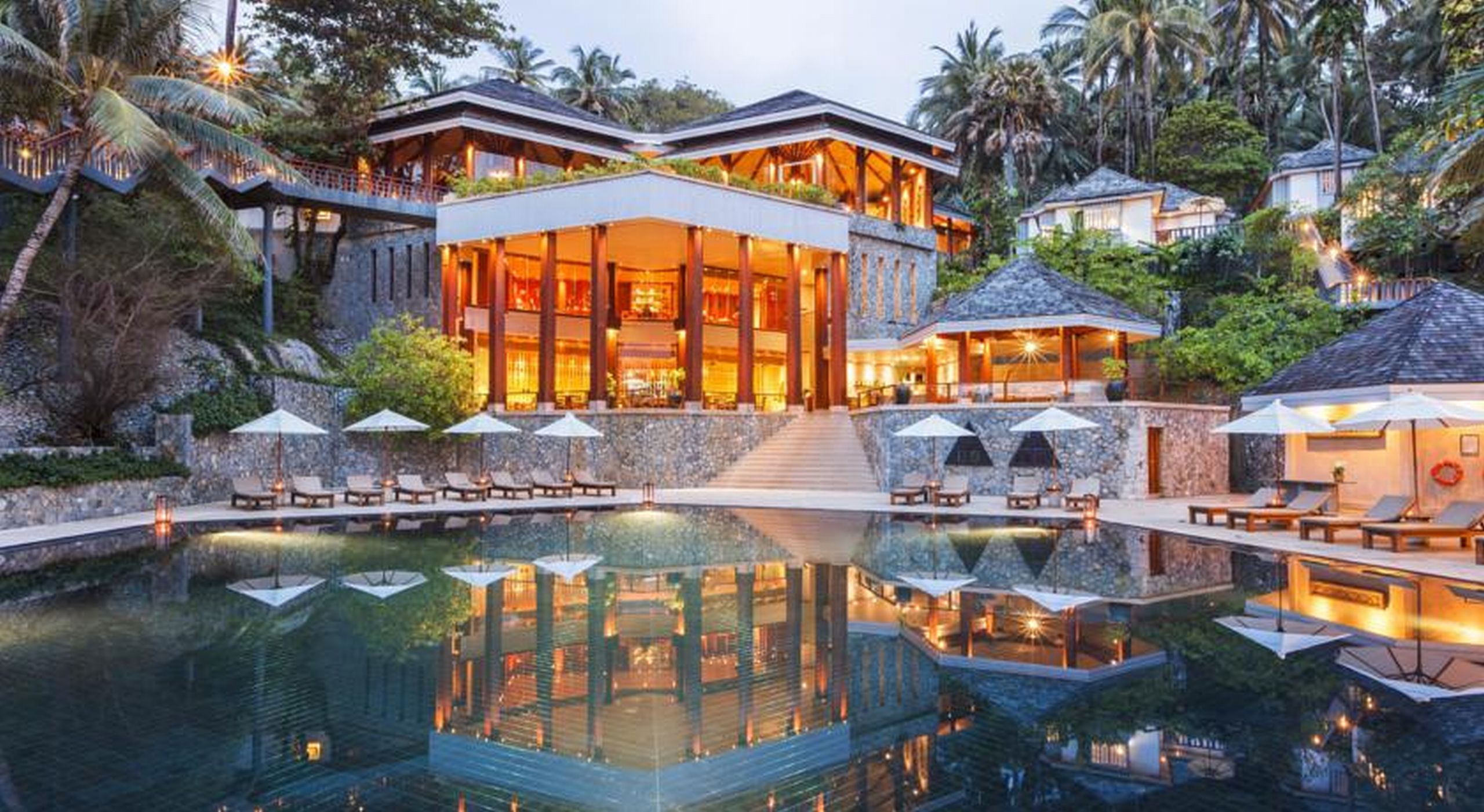 "To call it “glamping” would undersell the whole experience at this Twinpalms hideaway, where one- and two-bedroom tents are fronted by a winding lagoon dotted with lily pads and bordered by tropical greenery, with an additional five one-bedroom tents situated directly on the beach. Each tent is kitted out with king-size four-poster beds, large bathrooms with rain showers, air conditioning, and 24-hour butler service, and some of the lagoon tents have outdoor decks with private plunge pools and expansive living areas. Neutral tones, rattan and brown leather furnishings, and antique-style wooden pieces characterize each indoor space so elegantly that interiors barely resemble a tent at all. There’s no on-site dining, but guests can walk or take a shuttle to Twinpalms’ portfolio of restaurants, and there is an on-site tent spa where therapists take a holistic approach by combining contemporary and traditional Thai healing treatments and using organic products." - Chris Schalkx, Hannah Summers