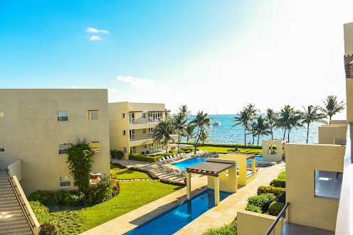 Beachfront hotel with ocean breezes, hammocks, and terraces