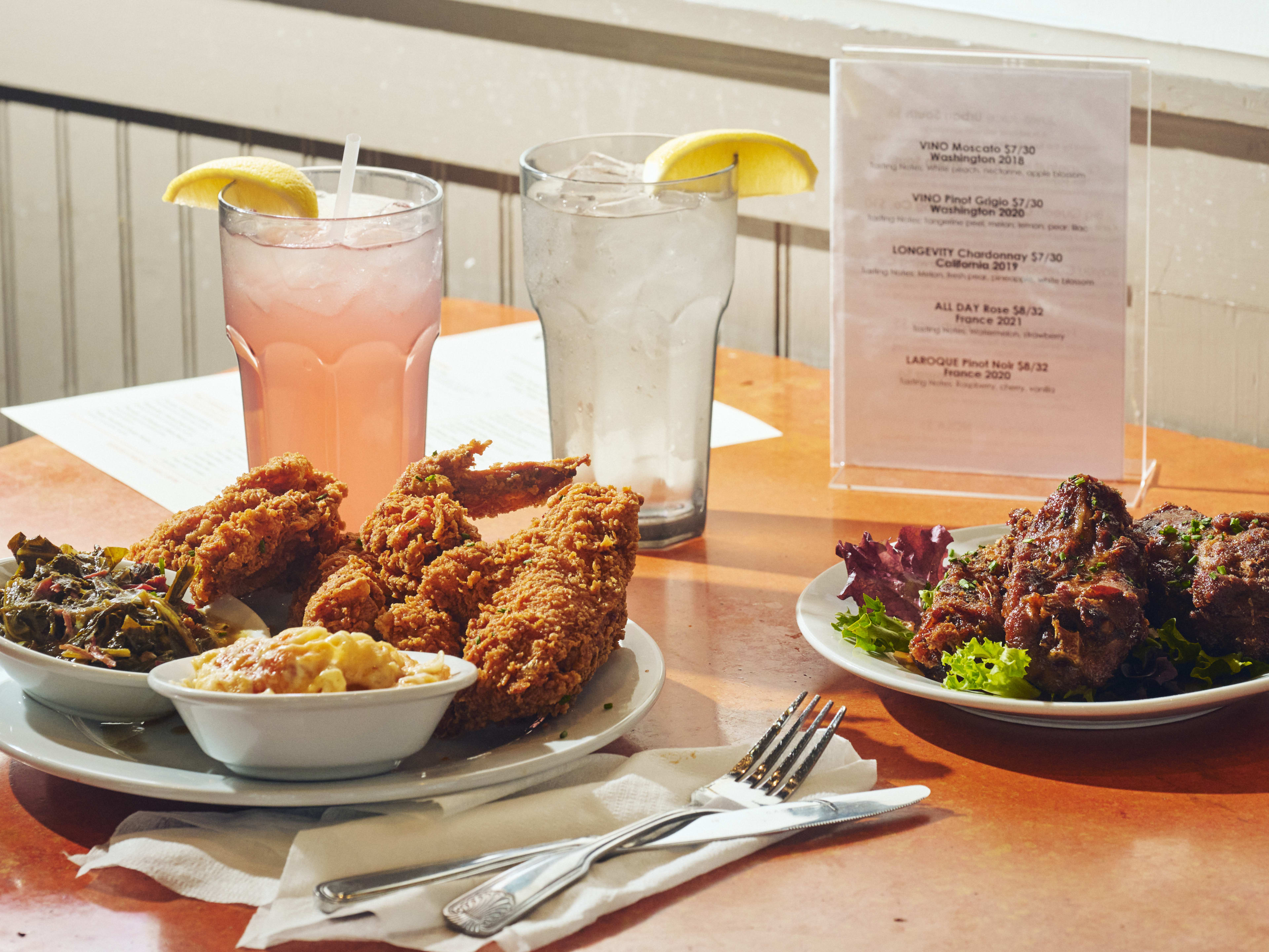 Cajun grub, fried chicken & drinks in a busy no-frills space