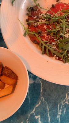 "Located in an unassuming building in the less-visited Islands Brygge waterfront neighborhood, Alouette is completely off the tourist track. The Copenhagen newbie is hidden behind a carved wooden door and set in a bright, sun-filled space. The menu, which relies heavily on small producers and farmers, evolves every one to two weeks depending on when products are in their prime. Although the ingredients are local, the chef (Nick Curtin, who formerly worked at Rosette in NYC) puts an American spin on the cooking." - Mary Holland