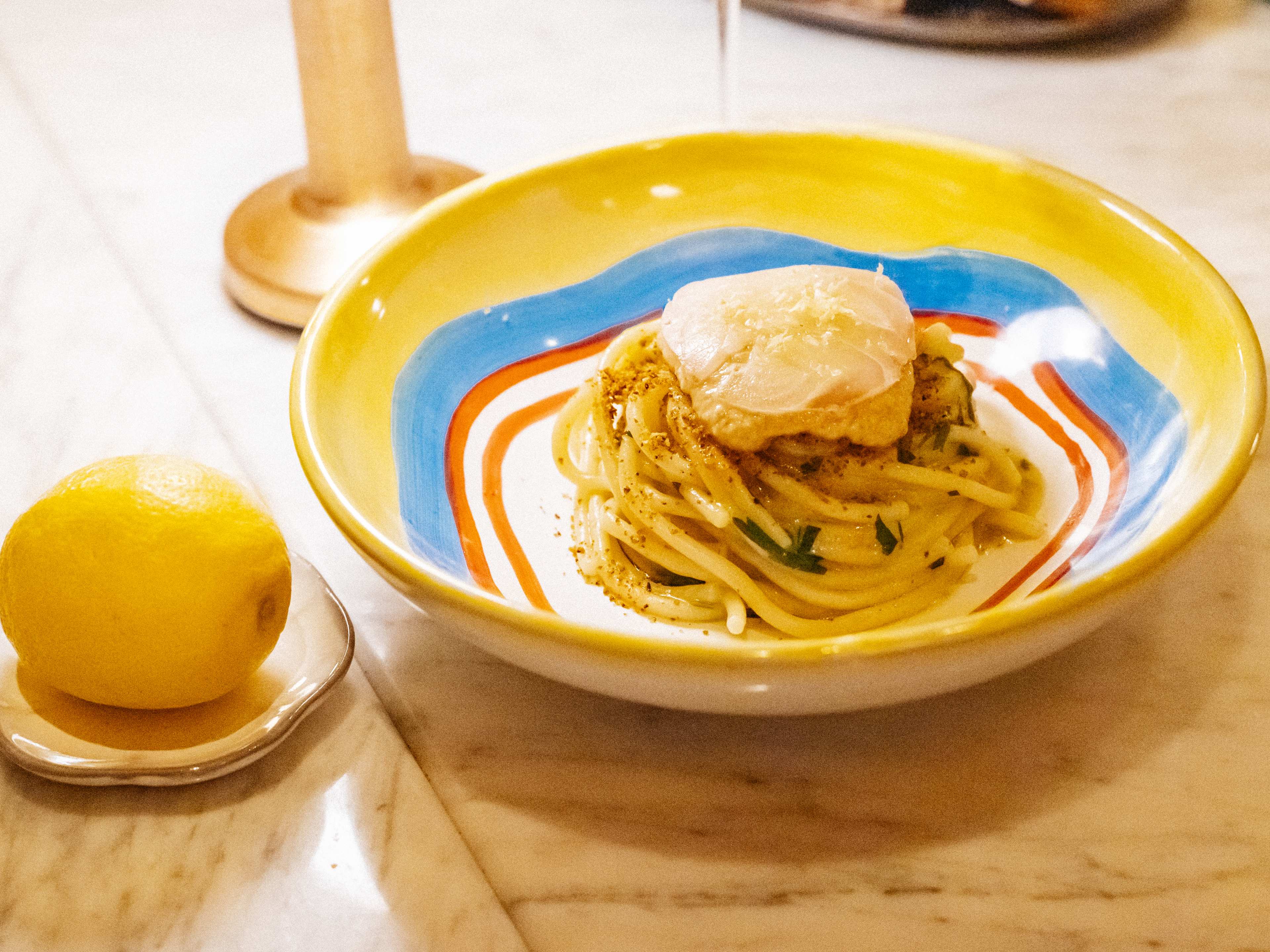 "What were your first impressions when you arrived? A glamorous, atmospheric eatery inside the W Rome, opulently decorated with pastel-coloured velvet couches, low lighting and wooden walls, serving Sicilian fare on brightly-coloured plates. What’s the crowd like? Young professionals enjoying the two-course (+ coffee), 22 Euro lunch menu. What should we be drinking? There’s a solid cocktail list, with names like ‘wake up call’ (Belvedere Vodka, Vanilla Ice Cream, Espresso Coffee, Italian Amaro) and ‘working hard’ (Campari, Red Ancho Reyes, Cocchi Red Vermouth, Agave, Del Maguey Vida Mezcal). It’s not cheap; they’ll set you back 20 Euros; martinis, classic cocktails, and even mocktails all come in at 18 Euros. Main event: the food. Give us the lowdown—especially what not to miss. The menu skews Sicilian, with dishes like fennel and orange salad, and pasta with fried eggplant, tomato and salted ricotta, all served on brightly colored plates. They also do a plentiful happy hour menu with great snacks like fried calamari and hot sauce; sesame sandwiches with fried chickpeas; toast with anchovies, plus a selection of tacos with Italian fillings. Come by on Sunday for their popular family-friendly brunch which has a buffet of grilled fish skewers, tomato and mozzarella rice balls; roasted lamb shank and couscous, plus a selection of very good desserts. And how did the front-of-house folks treat you? Attentive, international, multi-lingual and swift on the table service. Empty plates and glasses are whisked away, replaced with new ones almost immediately. What’s the real-real on why we’re coming here? A place that feels new and fresh for when you’re tired of trattorias." - Maresa Manara