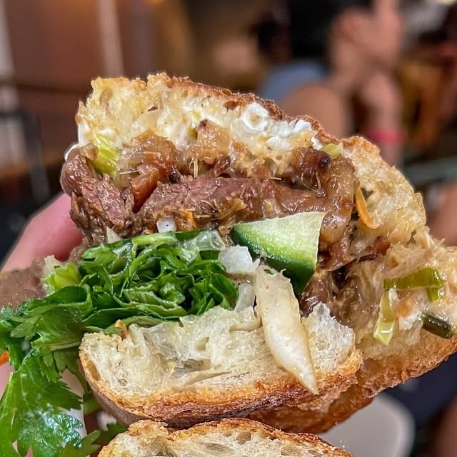 “The pho sandwich: Do most soups translate into sandwiches? Perhaps, but that doesn’t mean they should. Gimmicky but legit, Little Kirin’s pho sandwich is a rare exception. The chef, Brendan Tran, takes the elements of pho (paper-thin slivers of brisket, shaved white onion, chopped scallions and cilantro, fried shallots and hoisin) and nixes rice noodles for a ciabatta sub. Heavily seasoned with star anise, the accompanying broth (sold separately, by customer demand) is as good as that of any pho in the city, and completes the soup-to-sandwich concept for a French dip-meets-pho moment. The meat braises for six hours and the lucent broth is simmered separately; this sandwich takes no shortcuts. ALEXA WEIBEL”