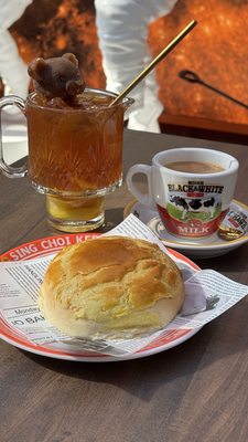 Most prominent are four “slippery egg” dishes ($14) that feature a mountain of rice blanketed by an omelet laced with milk and cheese, which glows alarmingly yellow. The one I tried had a breaded chicken cutlet on top with a Malaysian-style coconut curry gravy on the side. Noodle soups are another strong point. Using soft rice noodles, these deploy a mellow chicken broth and fill it with multiple ingredients, focusing on beef or seafood. The most expensive is abalone and seafood rice noodle soup ($20) featuring what seems like an unusual selection for a fast food joint: squid, shrimp, mussels, and fish balls, in addition to actual abalone, once a luxury product but now being farmed along the Fujianese coastline. This soup is briny and fortifying, but I left wishing I’d ordered the spicy beef noodle soup instead.