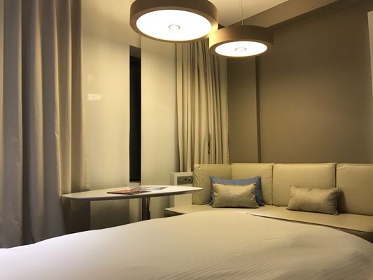 Upscale hotel with refined dining, bar, sauna, modern rooms.