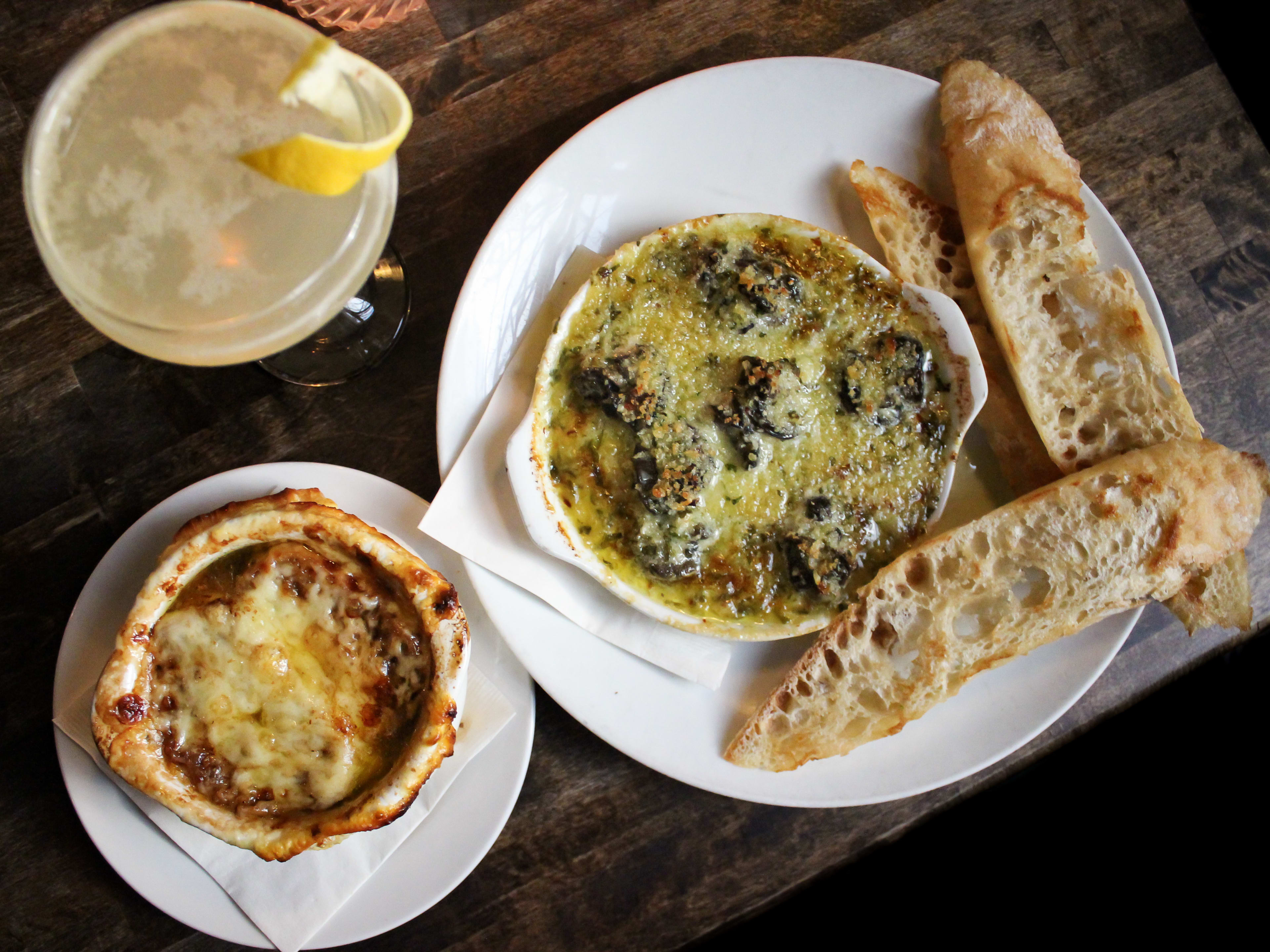 "Peche strives to bring classic drinks to life. While the bar can whip up anything, there are two dedicated off-menu cocktails: Devil’s Cocktail and Mustache Gun." - sommer-brugal