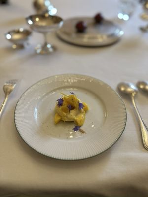 "Chef-owner Cyril Lignac has given this historic bistro a new seafood menu and a visual makeover by London-based interior architect Martin Brudnizki. The new look includes plush ribbed red velvet banquettes, a harlequin floor, and a mural of trees that reaches to a ceiling framed by original Belle Epoque moldings. The young, style-conscious crowds seem to dig it, and tuck into dishes like prawns with chipotle mayonnaise, oysters with grilled sausages, salmon in Thai bouillon, langoustine ravioli, and scallops with Jerusalem artichokes and black truffles." - Alexander Lobrano