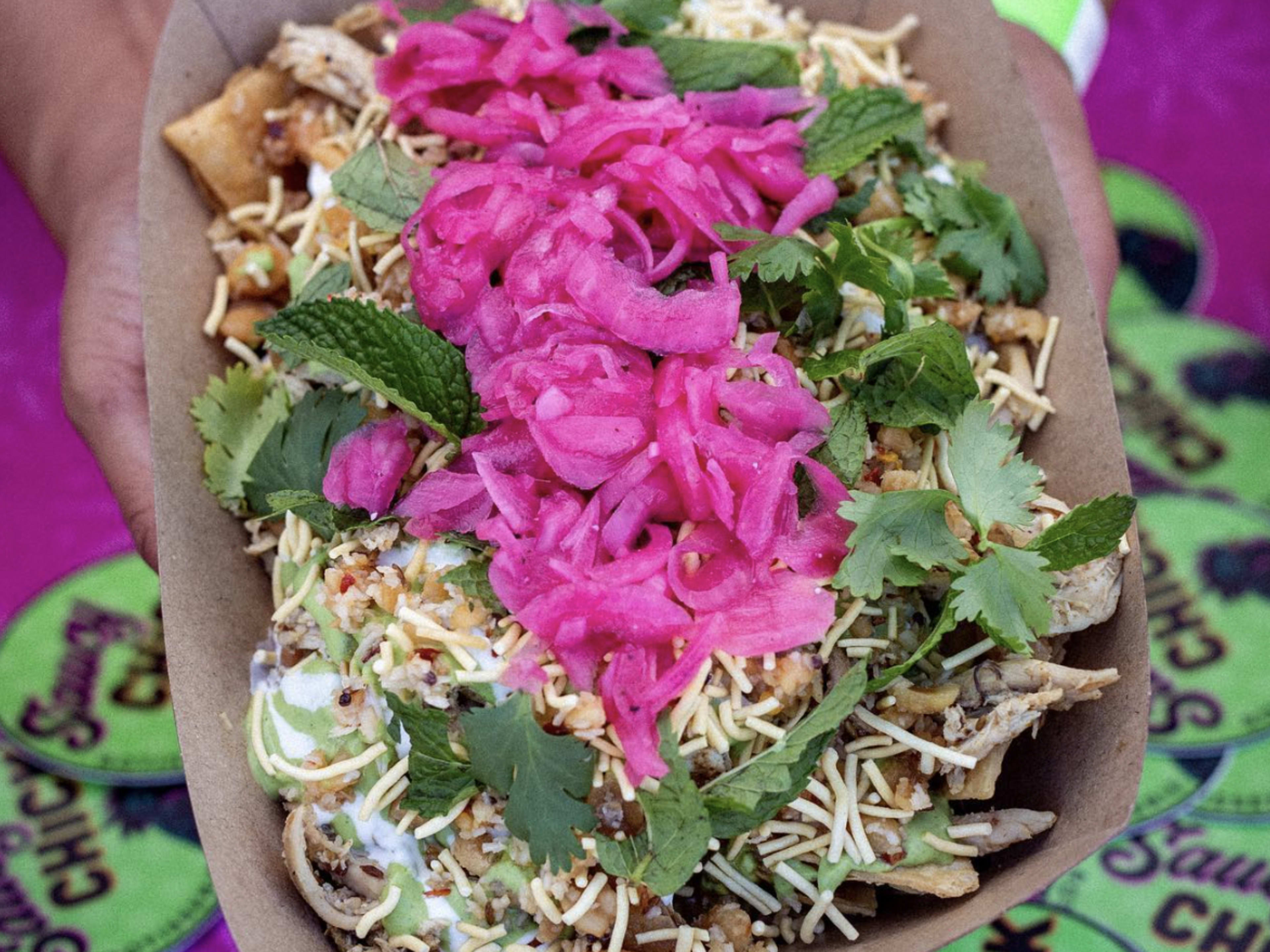Indian-Mexican fusion tacos with tender rotisserie chicken