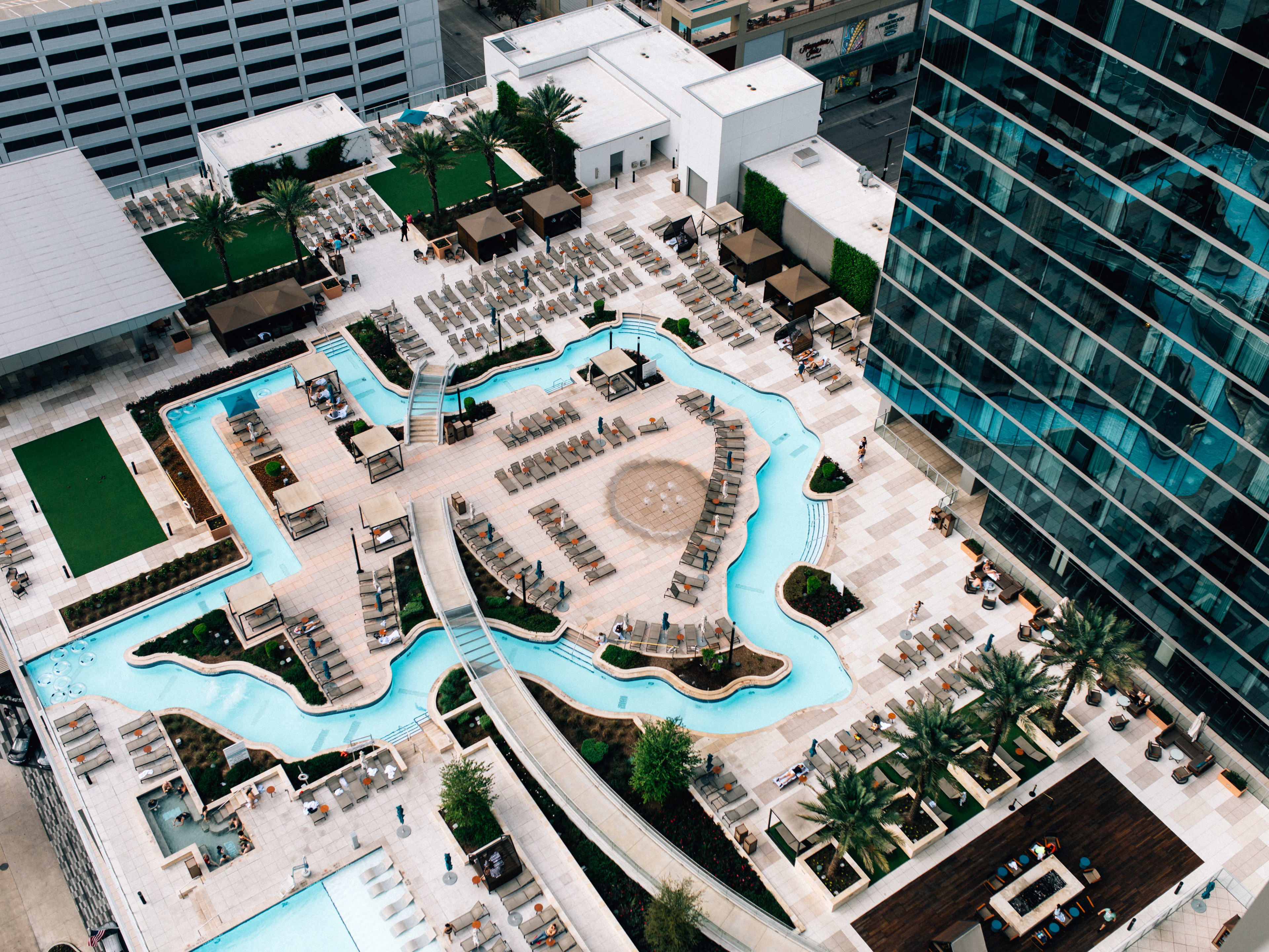 "The Altitude Rooftop & Pool, located on the 6th floor of the Marriott Marquis Hotel, has been transformed into a winter wonderland. Coined Texas Winter Lights, the display of 1,500 glittering lights across the sprawling terrace is shown daily until Sunday, December 31, along with plenty of photo displays and treat stations with candy and churro bars. Attendees can also float the famed Texas-shaped lazy river, which has been heated to 80 degrees. As a first this year, those looking for additional holiday cheer can reserve a 6-course dining experience in the Gastrodome, an igloo-inspired set up that can accommodate up to 10 people." - Megha McSwain, Brittany Britto Garley