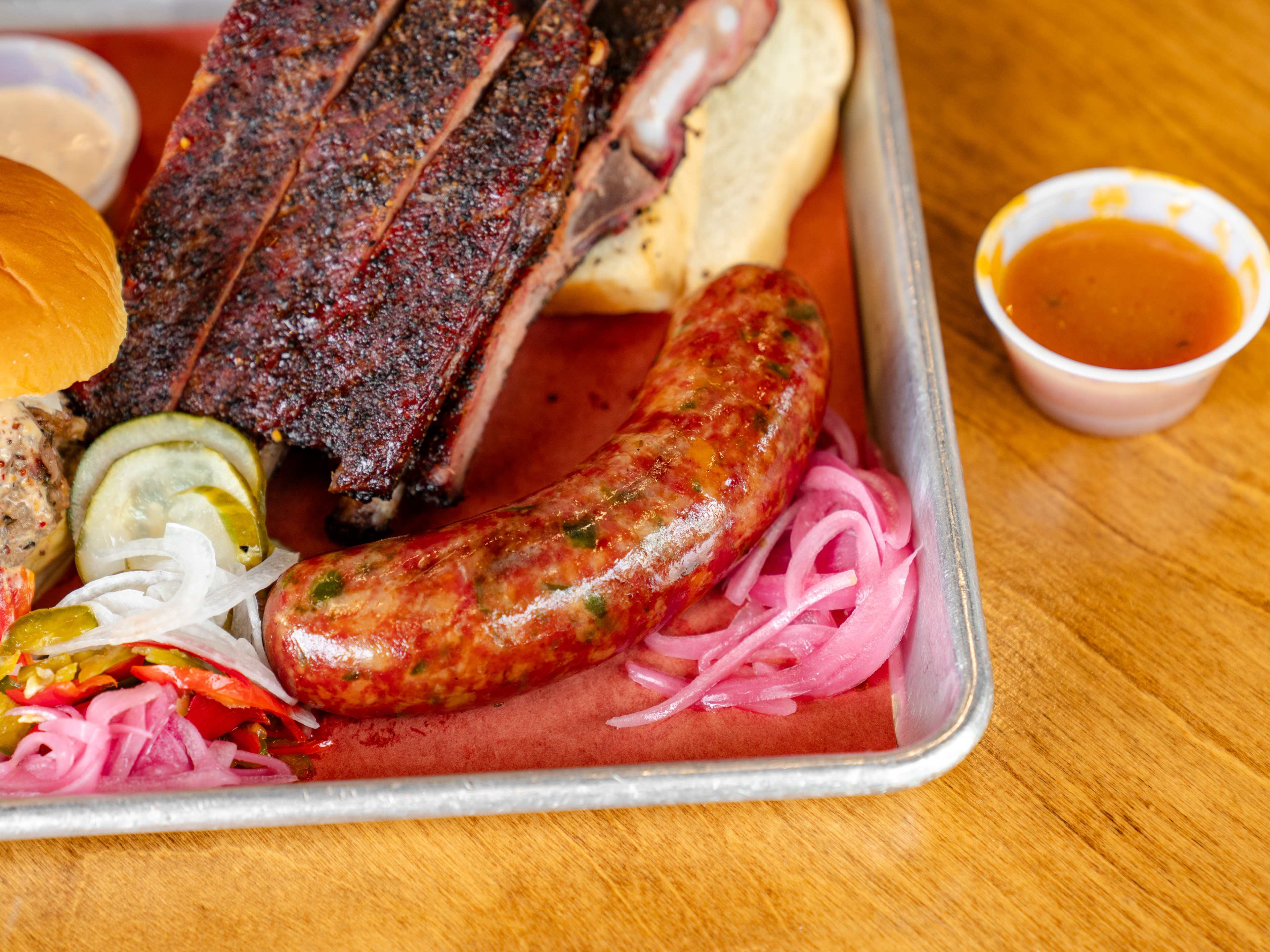 "Backed by pitmasters Robert Owens and Secret Pint BBQ owner Bryan Hull, and located in what was the Smyrna location of Grand Champion BBQ, Owens and Hull merges Texas- and Carolina-style barbecue smoked over Georgia oak on the menu. And the restaurant is already generating serious buzz amongst barbecue enthusiasts in Atlanta. Owens and Hull doesn’t feature a set menu of barbecue standards, but rather a specific menu served each day. This includes a smoked burger topped with White Castle onions and American cheese on Thursdays, reserving sliced brisket and turkey for service on Fridays and Saturdays, and regularly serving the popular sausages from Secret Pint’s pop-ups (Think sausages stuffed cheddar cheese and jalapenos or roasted poblano peppers and Oaxaca cheese.) Only open Thursday through Sunday, expect weekly specials, too, and a rotating selection of side dishes." - Eater Staff, Henna Bakshi