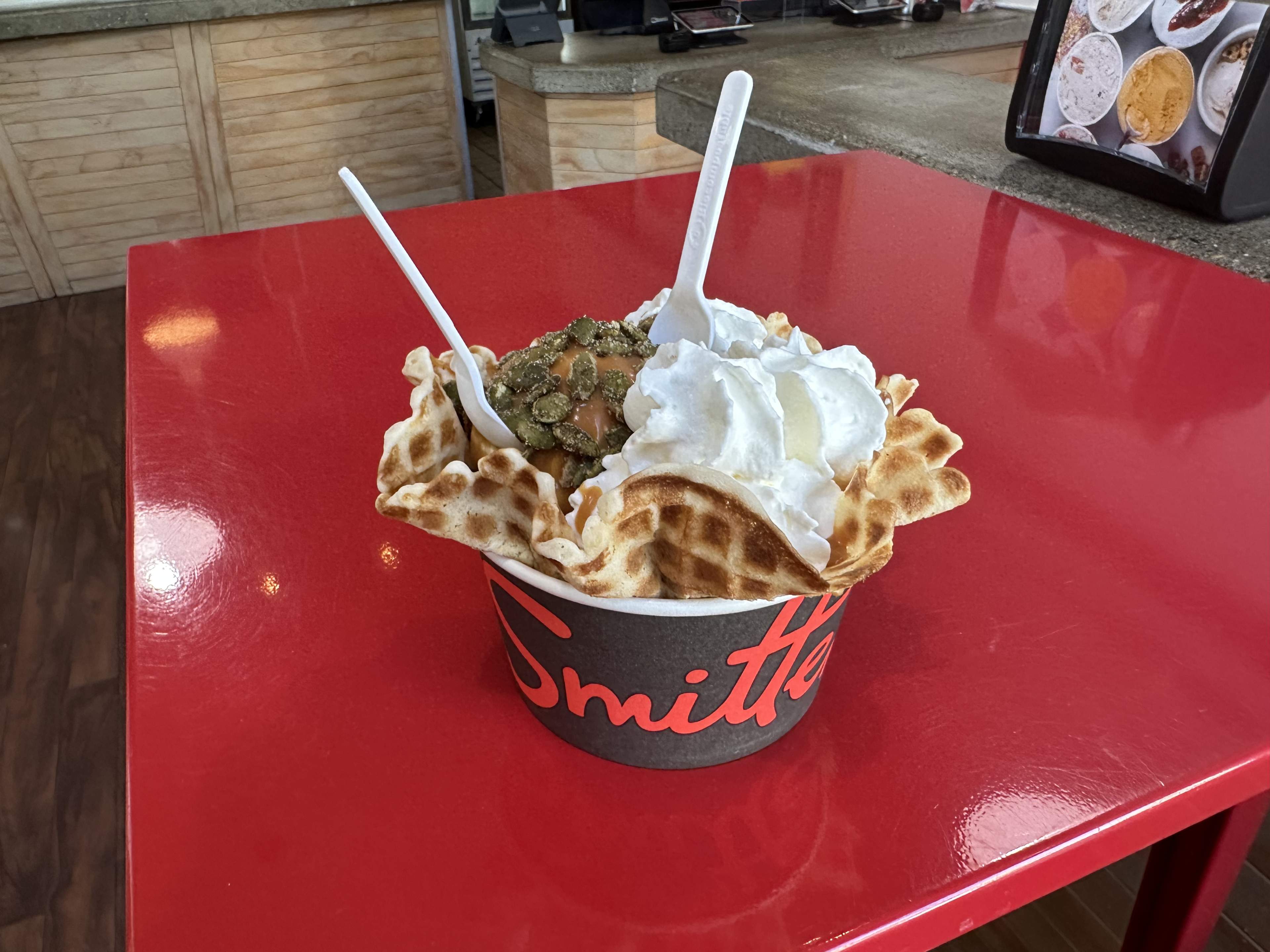 "I noticed Smitten Ice Cream, the ice cream counter inside the Sundry food hall, closed earlier this month; it had a fun gimmick where a staff member combined the liquid ice cream base in a metal bowl and introduced liquid nitrogen to freeze it into a scoop in about 90 seconds, briefly flooding its corner of the food hall in a chilled cloud of smoke." - Janna Karel
