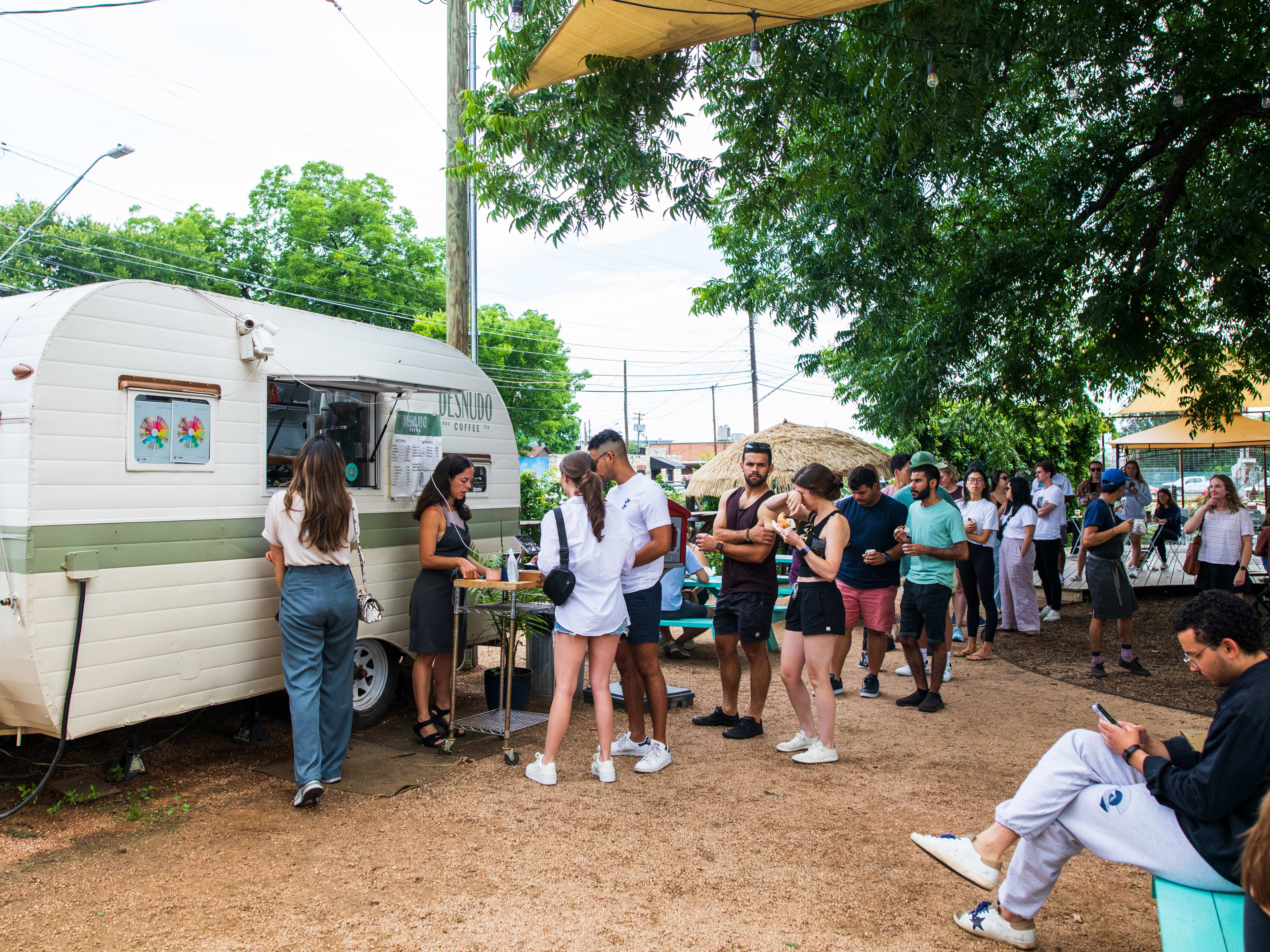 "A small micro-roastery and coffee truck run by brothers Sergio and Juan Trujillo that sources beans directly from small farms in Colombia, offering unique coffees you won’t find elsewhere. Since opening in 2022 it has become a bustling morning gathering spot in a food-truck park, with plenty of seating (patio, benches, high-top tables) and a cheerful, friendly vibe—loud-but-not-too-loud music, samples and banter from Juan, and a crowd that ranges from local parents and tech workers to tourists. Lines can get long, especially on weekends, so earlier is better; a recent visit was still under half an hour, helped by a newly opened second truck downtown. The menu includes classic espresso drinks but the specials draw most people: the brown sugar-miso latte (noted for its hint of umami), a popular matcha, seasonal fruit-forward drinks like the summertime “Lili Peach” (fermented peaches, honey, peach cream), and carefully curated cold brews Juan will happily recommend. The sole food offering—brown-butter chocolate chip cookies with toffee and pecans—is house-made using the brothers’ own chocolate and comes highly recommended. Overall it’s a feel-good place for an excellent, ethically sourced pick-me-up where you’ll likely leave smiling." - Erin Russell