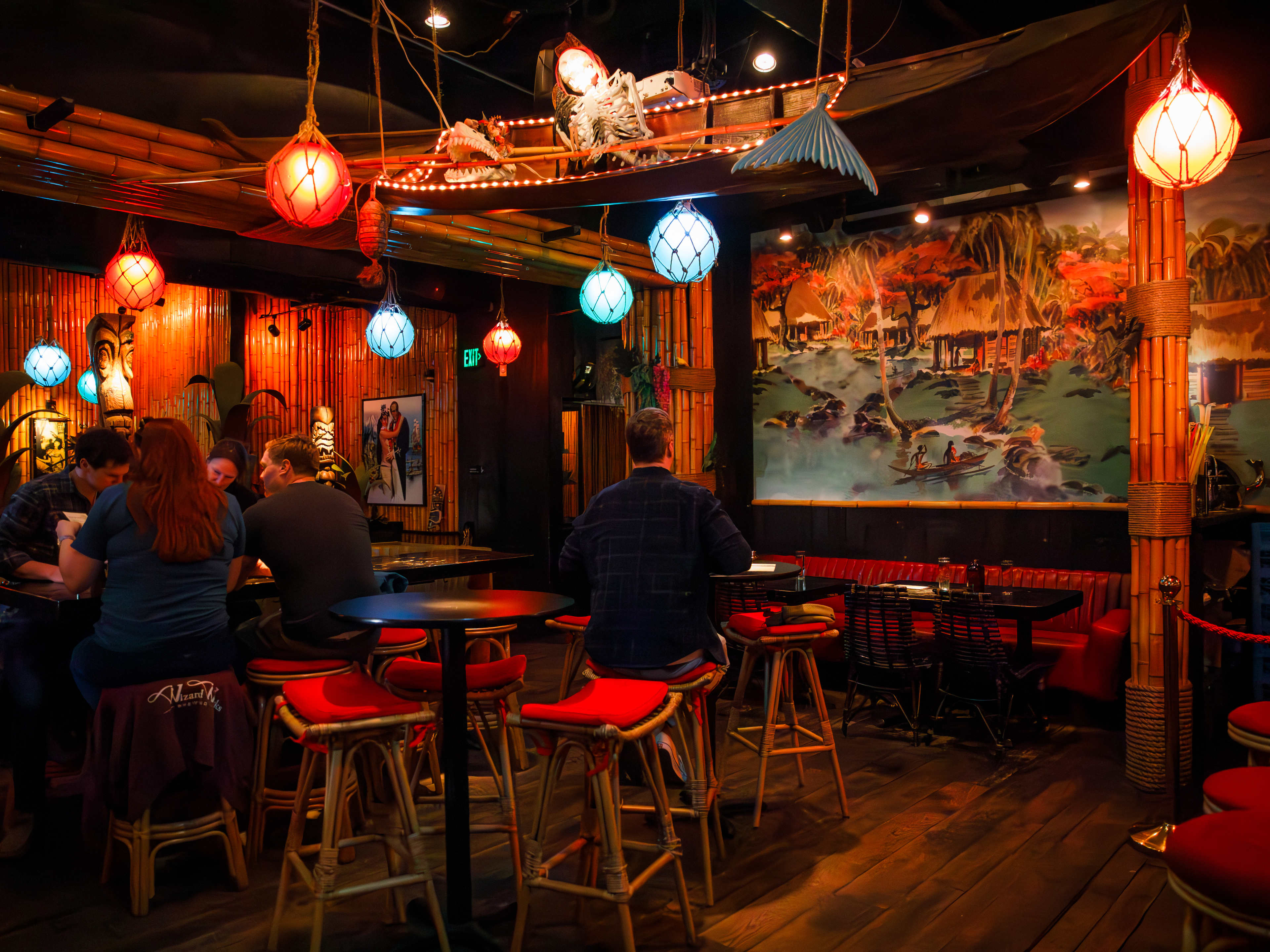 "Bamboo walls and colored lights strung up in fishing nets, totem carvings and murals of seaside villages, hanging boats and blowfish sculptures: This South Broadway tiki bar whisks its guests off to a tropical paradise the instant they set foot inside — and it keeps them there with a roster of cocktails served in coconuts or flaming punchbowls or funky mugs. Beyond classics like Zombies and Singapore Slings, seasonal originals warrant a spin — take the Monkey’s Fist with caçhaca, Oloroso Sherry, banana, cacao nib, coconut, chicory root, and coffee — alongside island-inflected snacks such as Spam musubi and poke nachos." - Ruth Tobias