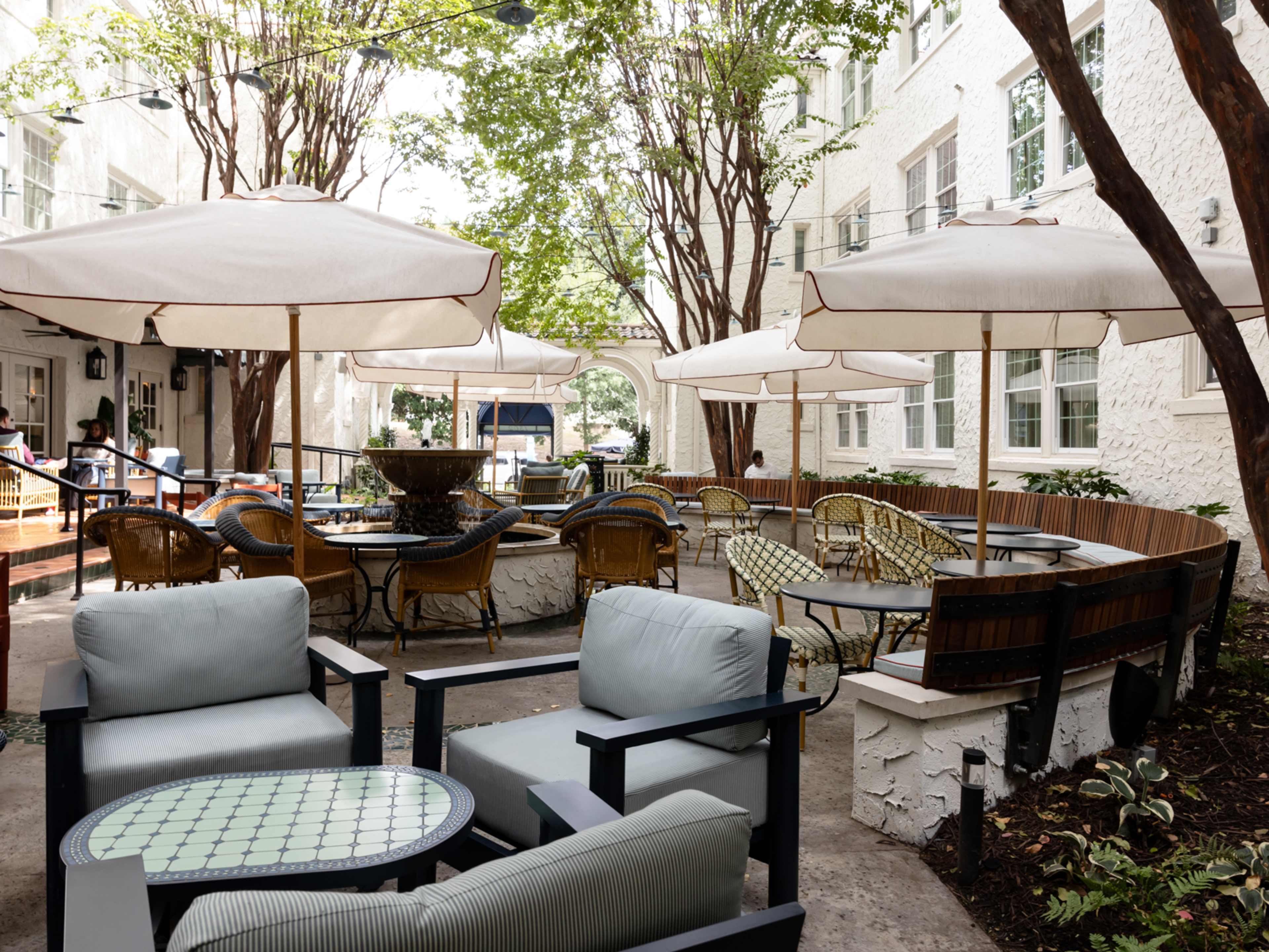 "A Midtown hotel bar offering a low-ABV shared 'Pour Things' served in a traditional Spanish porron for dramatic communal pouring; the blend — featuring Txakolina wine, Cocchi Americano, chamomile tea, apricot brandy, and ginger liqueur — is designed to pour cleanly, be lightly effervescent or dry, and provide fruity, slightly sweeter flavors without overwhelming alcohol intensity." - Caroline Eubanks