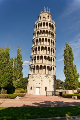 Leaning Tower replica, photo spot, park grounds, free access