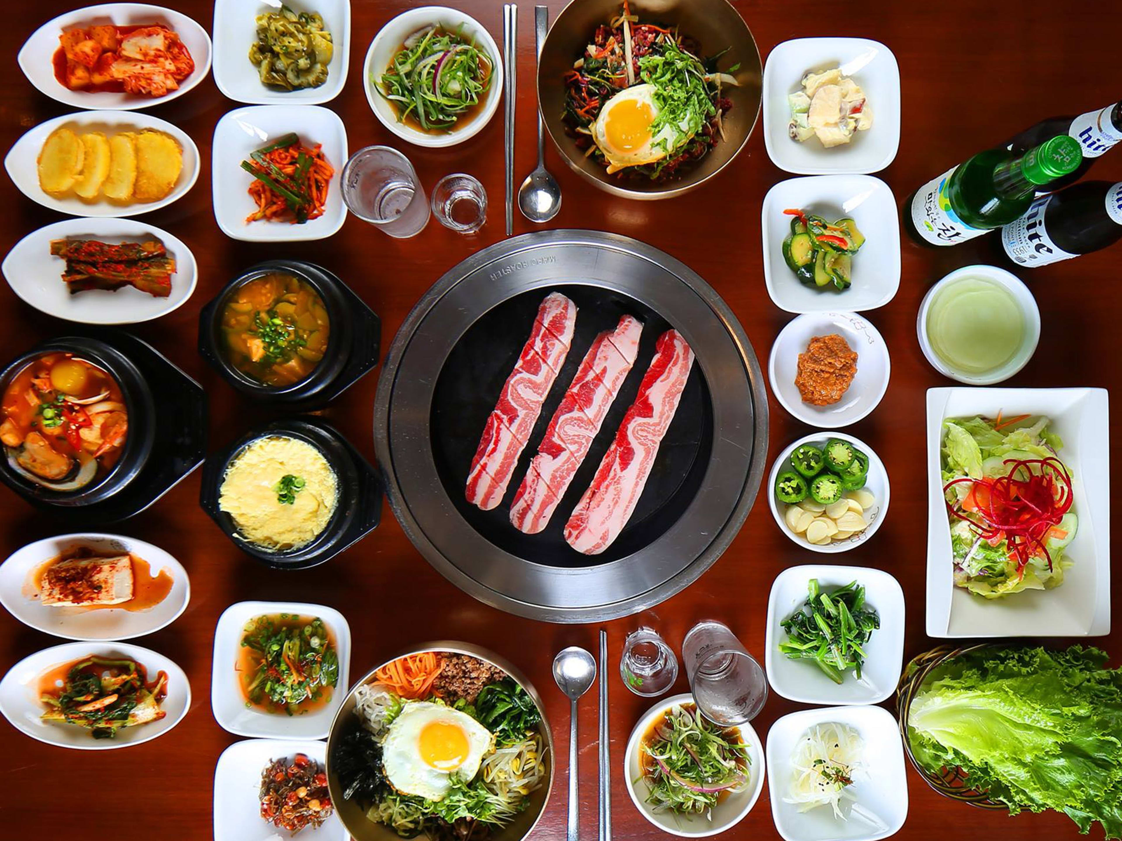 "Located in Murray Hill, Queens, Hahm Ji Bach has been serving some of the best KBBQ in NYC for over 20 years, although nowadays they have some help from a robot who brings banchan to your table. The diverse (and bottomless) assortment of banchan is one of the main reasons to come here, but you’ll need some barbecue to accompany it. Try the beef sampler, which comes with thick, luxurious galbi in addition to a few leaner cuts. It costs about $110, and it’s big enough to split between three people. Hahm Ji Bach is open 24 hours most days, so bring a few friends the next time you get hungry at 3am." - bryan kim, kenny yang, willa moore, will hartman