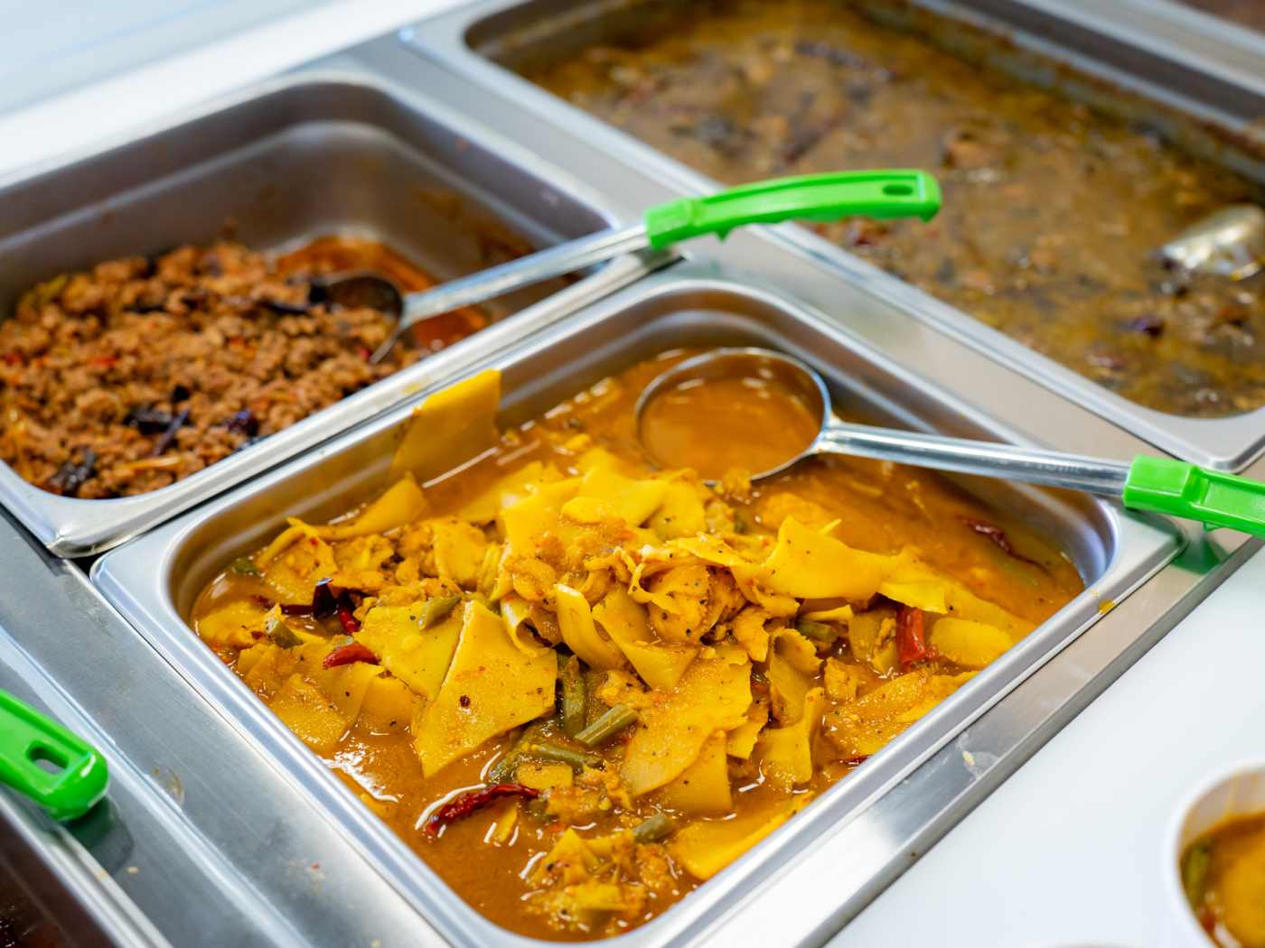 "We wouldn’t fault you for assuming Luv2Eat Express was a takeout version of its famous sibling. We kind of did. But this steam table spot is different, serving homey Southern Thai curries and stir-fries you won’t find elsewhere. Ordering is done cafeteria-style: pick a combo plate ($18 for three dishes with jasmine rice is a perfect lunch) then choose from options like Phuket braised pork belly, sour yellow curry with bamboo, and tamarind-glazed fried fish cakes. Every dish is incredibly flavorful, and often, incredibly spicy. So much so that they put a flaming “caution of spiciness” sign out front. Proceed accordingly, and grab a black thai iced tea from the cooler in case of emergency. " - brant cox