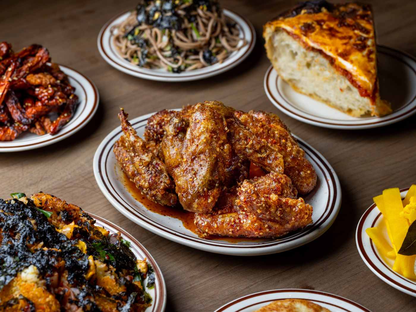 "Stop by Yangban on a Friday night, and it’ll probably be dark, blasting R&B, and full of people who look like they’re going to be out until last call. In other words, this semi-casual Korean restaurant—hidden in an alleyway just off of S. Santa Fe Ave— is the perfect place to kick off a night out in DTLA. In addition to some of our favorite fried chicken wings in town, Yangban’s inventive menu blends Korean flavors into dishes like bolognese, mole, and duck confit. Start with the myulchi caesar salad and some gochujang tiger prawns, then order a few of the larger entrees that catch your eye. " - brant cox, nikko duren, garrett snyder, sylvio martins