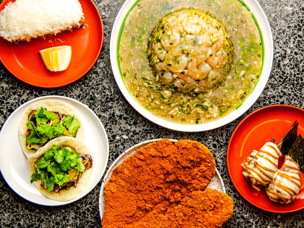 "There’s nothing quite like a real, eyes wide, ooh moment in a restaurant. Especially one that isn’t faffing about with liquid nitrogen or OTT interiors—but instead prefers to reveal a very pleasing half sphere of prawn fried rice before pouring green-tinted, viscous hot and sour soup over it. That’s Mr Ji’s vibe. The Camden restaurant describes itself as ‘east meets west’, but we think of it as an everyday restaurant that guarantees food that you want to talk about. Mr Ji has embraced a thoroughly neighbourhood approach in its Camden home. The front banquette area is made for solo diners working out how to tackle The O’Ji (a frisbee-ish flattened and deep-fried crispy chicken breast), as much as it is for last-minute dates who will always have something to talk about when sharing the oozing, béchamel-heavy prawn-in-toast. The main dining room—all gun metal greys and modern lines—has the space and big round tables for groups interested in sharing that fried rice or silky sirloin with a humming pepper sauce. This is where to spend a couple of hours and really get to know the menu. photo credit: Aleksandra Boruch Small plates and sharing are the best way to enjoy Mr Ji’s always-innovative flavour combinations. Their take on tacos, using dumpling skins and topped with a super tender braised pig’s head, are must-orders. Similarly all the small plates, from ox tongue to stuffed chicken wings, are cooked with enlivening combinations like wasabi vinaigrette or crab emulsion. You can easily order from the snacks and small plates, alongside a plum negroni or two, and be very happy. Otherwise, bigger groups should go for the larger plates like an invigorating whole fish with rice cakes and kimchi broth. However you play it, Mr Ji is going to make you chew the fat about, well, what you’re chewing. Food Rundown Hearts These crispy chicken hearts are beautifully tender and once they’re popped in a lettuce wrap and smothered in a warming, katsu-like curry sauce you’ll find that there are very few words said around the table. And that’s always a good sign. photo credit: Aleksandra Boruch Prawn "In" Toast This take on prawn toast—filled with a prawn and béchamel mixture before having parmesan rained over it—is unlike any prawn toast you’ve had before. It’s totally decadent and you should 100% order it. photo credit: Aleksandra Boruch Wings These stuffed wings are really what Mr Ji is all about. They’re a familiar food, done funky. The wing is filled with minced pork and prawn, covered in yoghurt and a crab sauce. Use the nori sheets to pick them up: this is a fun, saucy mess. photo credit: Aleksandra Boruch "Tacos" Inverted commas on a dish’s description can often send alarm bells ringing in our head, but these "tacos" are 10/10. The chunks of pig’s head are in a deep, sweet, tar-coloured sauce—the kind of thing you could ladle over rice and/or into your mouth—and the dumpling skin wrappers work perfectly. A slice of pickle and a sprig of coriander on top cuts through the sweet richness. photo credit: Aleksandra Boruch Fried Rice There’s an element of theatre to this dish: a bowl is lifted to reveal your rice, then green-tinted, viscous, hot and sour soup is poured over it. But, unlike Heinz’s foray into weird-coloured ketchup at the start of the millennium, there is nothing novelty about this. The hot and sour soup is gelatinous, with layers of peppery and herby flavour, while the boulder of rice is speckled with sweetcorn, egg, and green peas." - Jake Missing