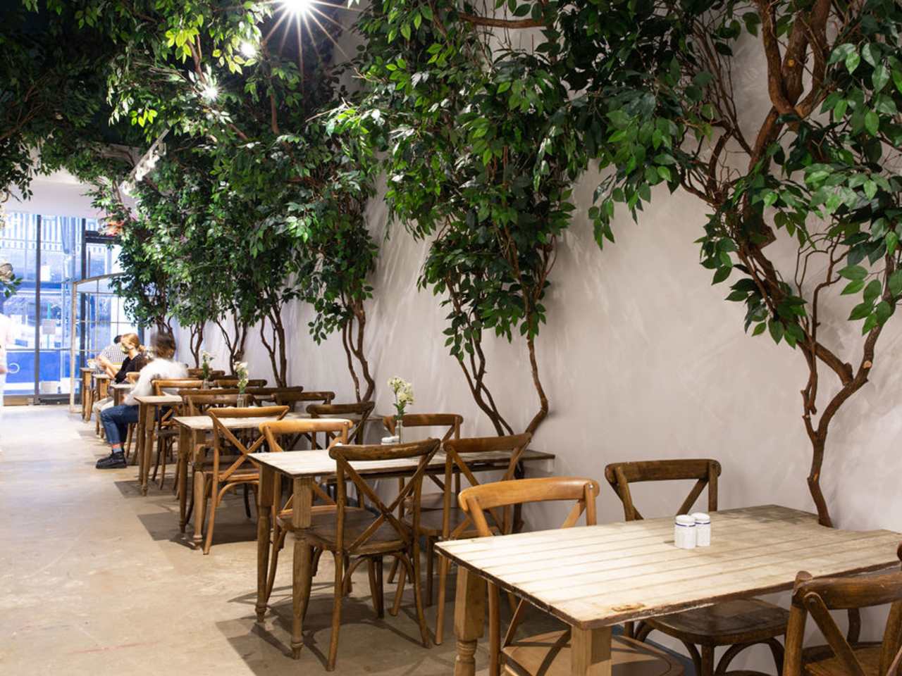 "If a Maman hasn’t opened in your neighborhood yet, just wait and one will probably pop up. This location near Rockefeller Center is decorated with a lot of greenery, and it feels like the room should be filled with woodland creatures instead of people eating lunch. Maman excels at baked items like croissants, loaf cakes, and cookies. Because of that, we prefer their sandwiches to their salads. One of their best is the warm roast beef and cheddar on ciabatta with wasabi mayo. You should know that laptops aren’t allowed here, but phones are fine, so you’ll be okay." - Kenny Yang