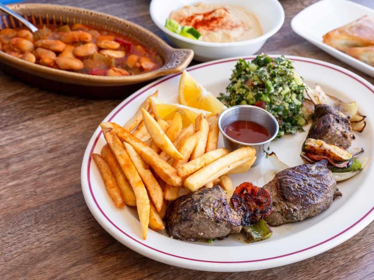"For being a small counter-service spot on W. 3rd Street, this Beverly Grove restaurant has a relatively huge menu. Run by the same owner as the now-closed Larchmont classic Le Petit Greek, Greek Eats offers well-executed staples like flaky spanakopita hot from the oven, buttery gigante beans in a warm tomato sauce, and a massive lamb souvlaki skewer with chunks of meat the size of a small orange. The lamb is cooked perfectly, and we like it with warm fries and fresh, bright tabbouleh. You’ll notice people grabbing takeout orders at the counter, but a sit-down meal on the sidewalk with a Greek spread is an undeniable upgrade." - Sylvio Martins