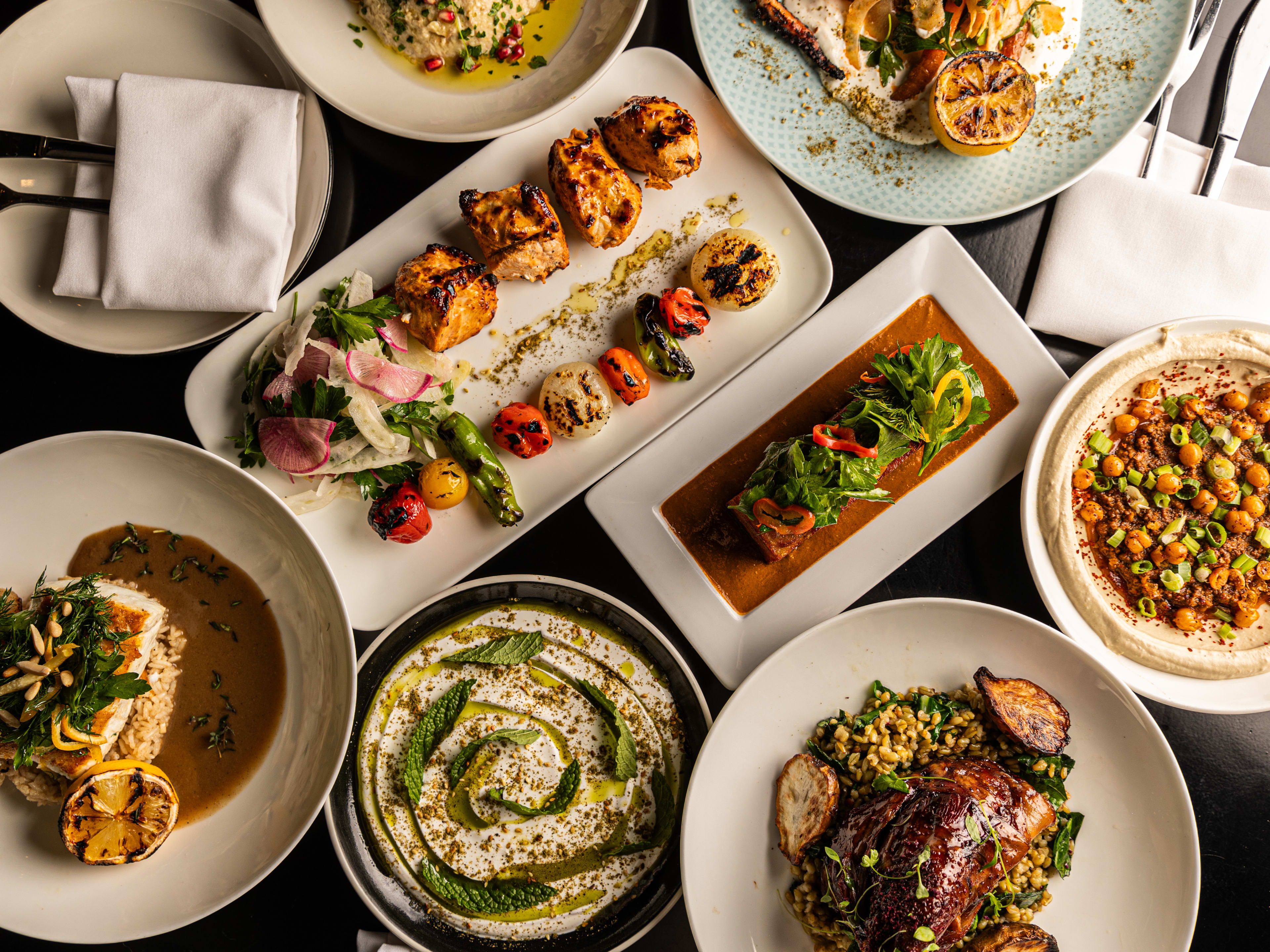 Modern Israeli dishes, wood-fired oven, hummus, lamb shank