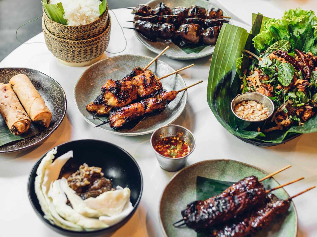 "Really good barbecued meat on a stick is hard to beat. At Dhom, a Lao spot in the East Village, they've pretty much mastered the form. They have two types of skewers: hanger steak and chicken thigh, both marinated in a sweet-and-smoky sauce. Get them with a side of sticky rice—the garlicky chili sauce will make your lips buzz. Pad out your order with spring rolls and a crunchy coconut rice salad. The food here is snacky and designed for drinking, which we suspect you might be doing a bit of on New Year's." - Neha Talreja