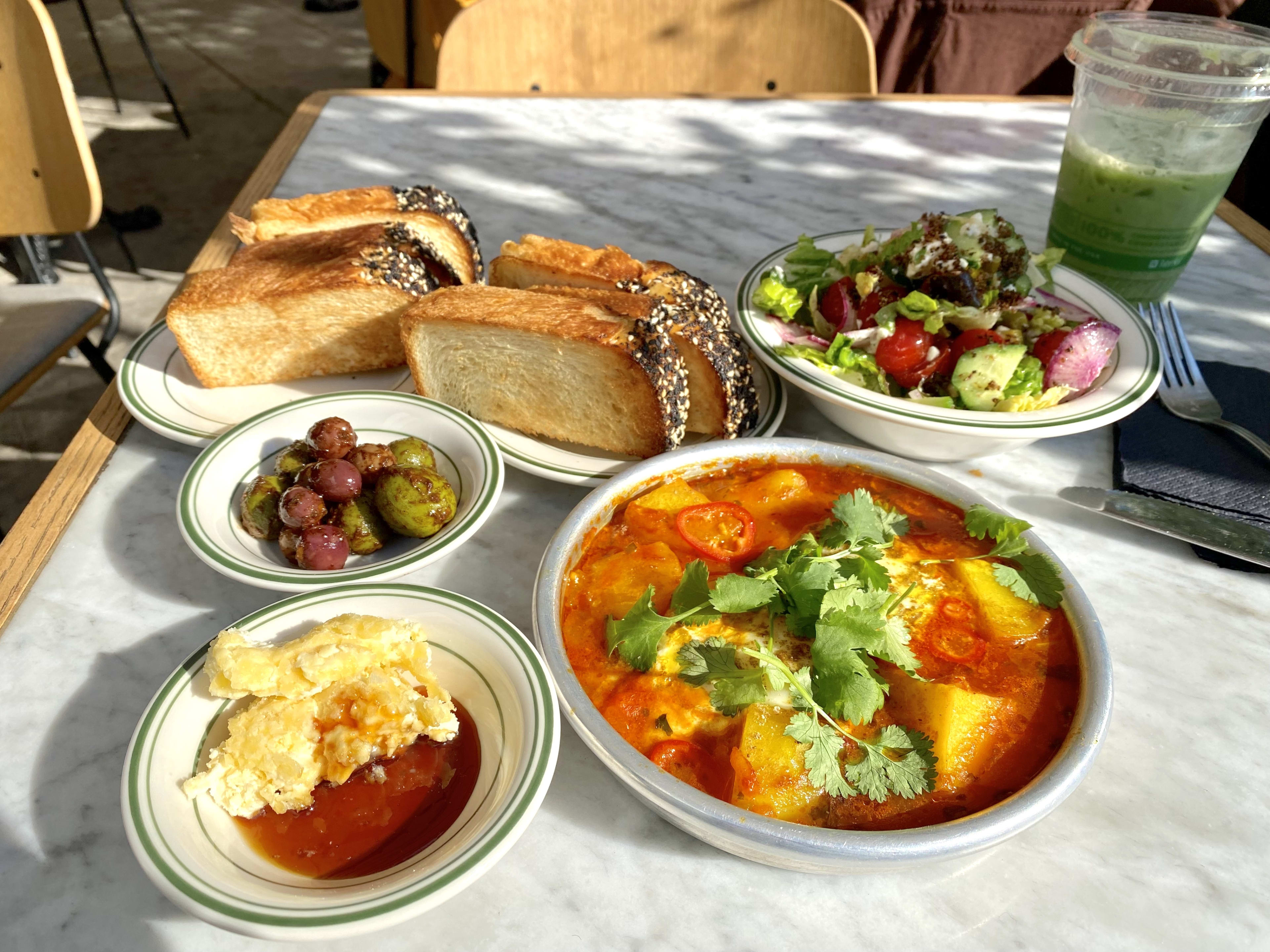 "Saffy’s in East Hollywood can be a tricky reservation on the weekends, but you can always opt for brunch next door. The East Hollywood kebab house has a casual café that, starting at 9am, offers a $24 Arabic breakfast set. The spread comes with a skillet of shakshuka and toasted challah with clotted cream, or you can keep things simpler with housemade yogurt sweetened with honey and a few feta-stuffed bourekas with coffee. Show up after 11am, and Saffy’s Coffee & Tea does heartier stuff, too, like warm hummus and lamb brisket pitas." - brant cox, sylvio martins, cathy park