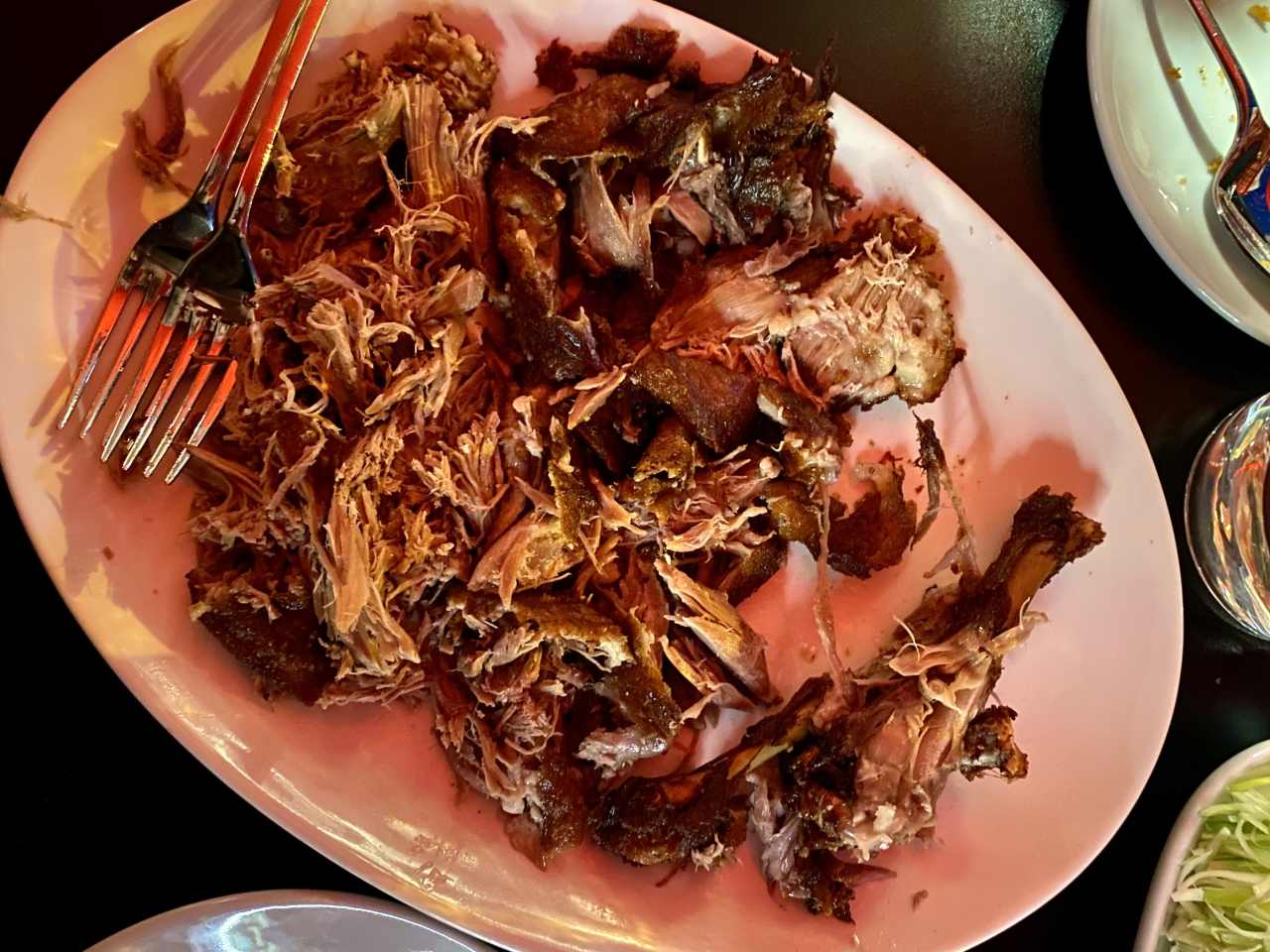 "Crispy Aromatic Duck (Half) Balham’s got a new Chinese restaurant that’s serving the classics. We’re talking Sichuan dumplings, char siu pork, and old faithful, crispy aromatic duck pancakes. And let us tell you, the duck here is fantastic. It arrives at your table like the ultimate party guest, smelling amazing and glistening, before being ceremoniously carved whilst you pretend you’re not dribbling in public. The pancakes are thick enough to hold a serious dose of duck, hoisin, spring onions, and cucumber, without a single tear. But it’s the duck that’s the real star of the show. The skin is gloriously crispy but the meat is still nice and juicy with that whole melt in the mouth thing going on. You can also opt for a quarter, but when it’s this good, going for a half is a no-brainer." - heidi lauth beasley, jake missing, rianne shlebak