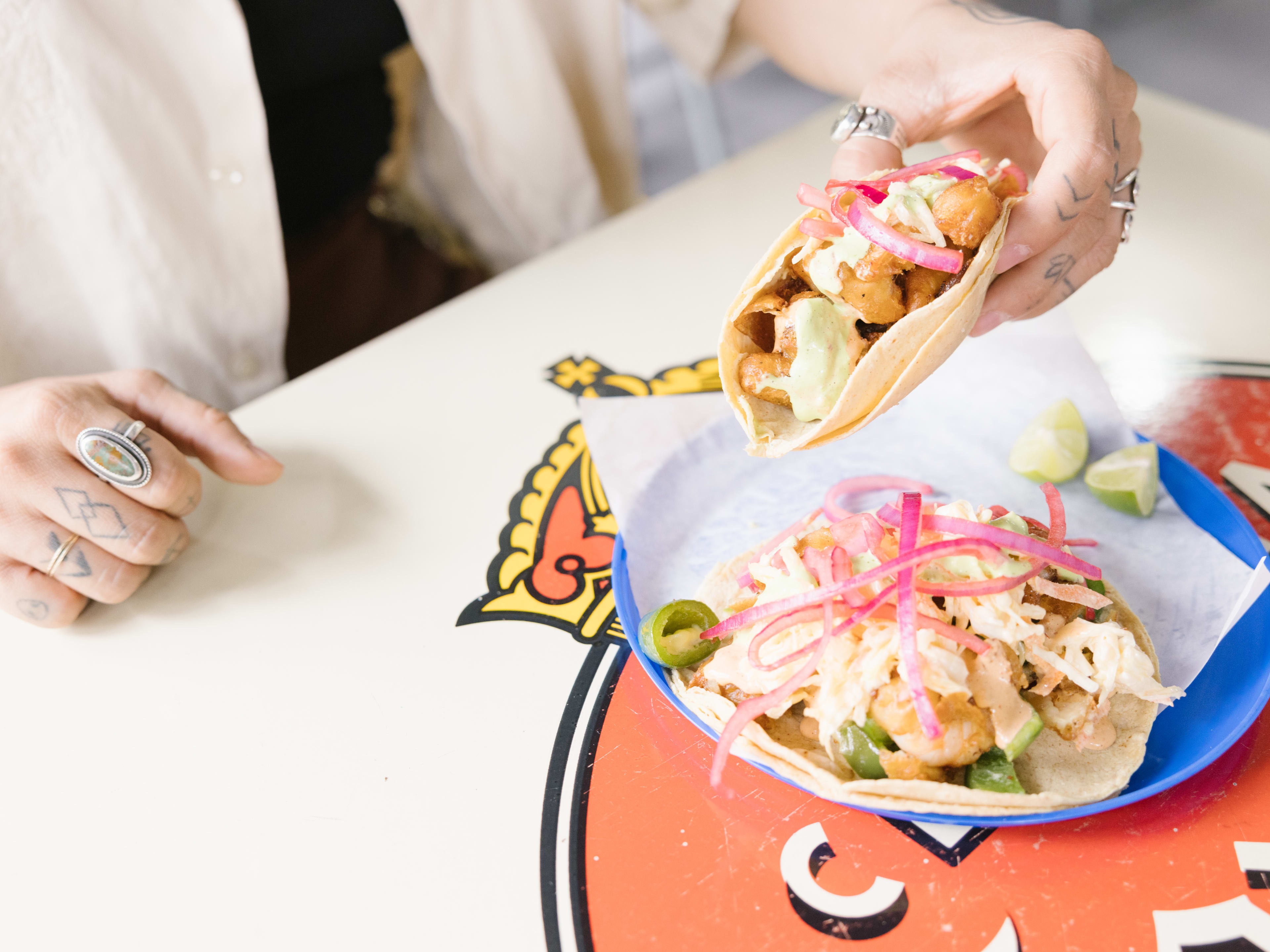 "The best $3 you can spend in Condesa is Pescadito’s quesotote taco: a corn tortilla filled with an entire chile relleno and fried shrimp. This is a casual, cafeteria-style spot with a tight selection of fried shrimp tacos, fried fish tacos, and plenty of beer. And while the menu is short, the variety of unlimited free toppings you can add to your order is anything but, with multiple salsas, coleslaw, and pickled red onion." - guillaume guevara