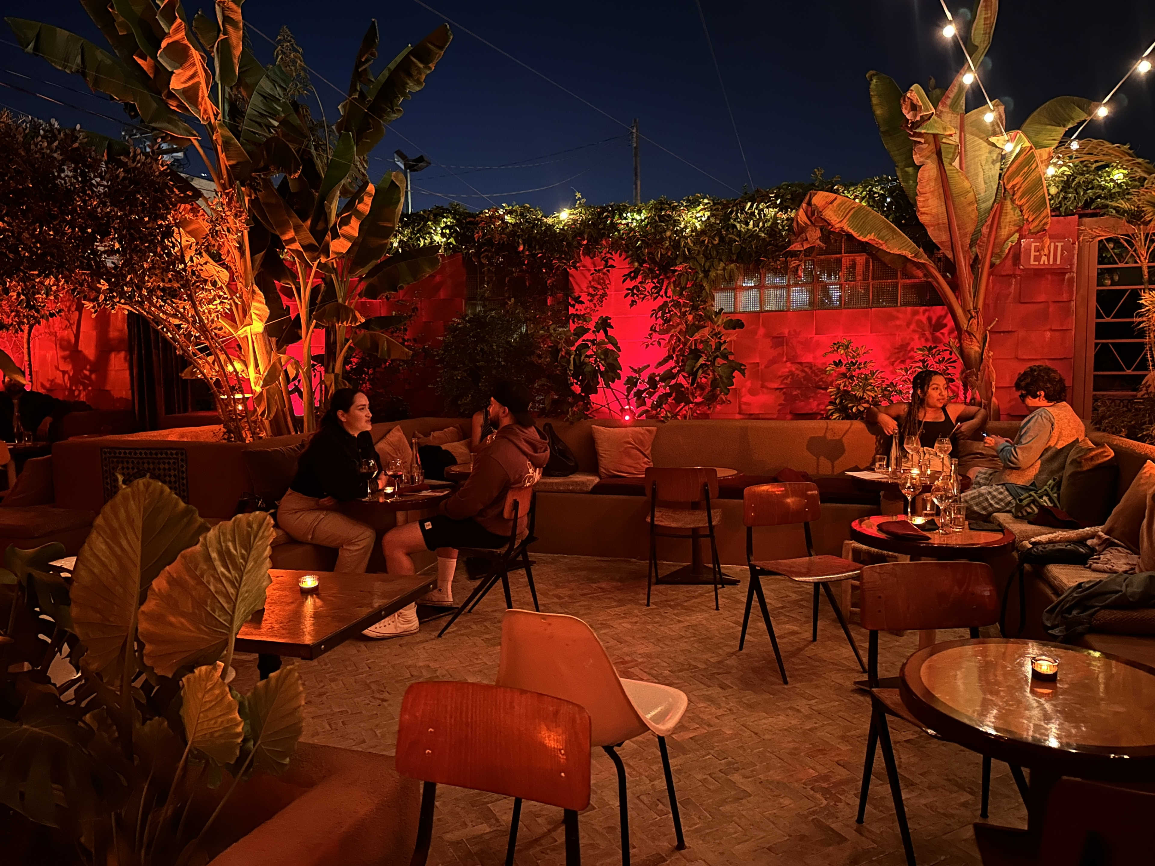 "Zizou’s back patio coolness comes from its surprise factor. This French-Moroccan wine bar in Lincoln Heights has a blank stucco facade and is all but silent from the sidewalk. Then the sound system hits as you move inside. Moroccan funk booms from big retro speakers. Glowing ruby red lights illuminated the gold-tiled bar and spacious back garden. People lounge on plush booths, drink natural wine, and eat moules frites under passion fruit vines, as if they’ve stumbled on an oasis off the 5. Everyone—including the staff—gets into the music here (especially after a few glasses of sancerre), so don’t be shy about making use of the ad hoc dance area." - brant cox, arden shore, sylvio martins, cathy park
