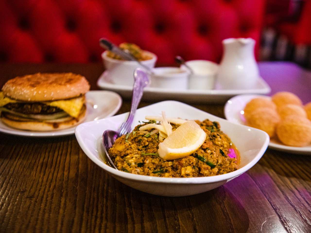 "The excellent mocktail menu at Karachi Cuisine is the first indicator that the Norbury restaurant is somewhere to come for a good time. The second is the suited server who won’t bat an eyelid when you go for an electric blue drink. The spacious dining room, with purple overhead lighting and bright red booths, is primed for locals celebrating any and every special occasion over a round of paani poori. Although Karachi Cuisine serves dishes found all over Pakistan and North India, its namesake city, Karachi, has a big influence on the menu. Bun kebab is a must-order— the patty, sandwiched with omelette and salad in a bun, is super soft and spiced. Get maghaz karahi to scoop with kulcha naan too—the tender lamb brain is fried beautifully with ginger and chilli. It’s hard to go wrong whatever you’re in the mood for, especially accompanied with another sweet, blue curaçao-inspired mocktail. " - Daisy Meager