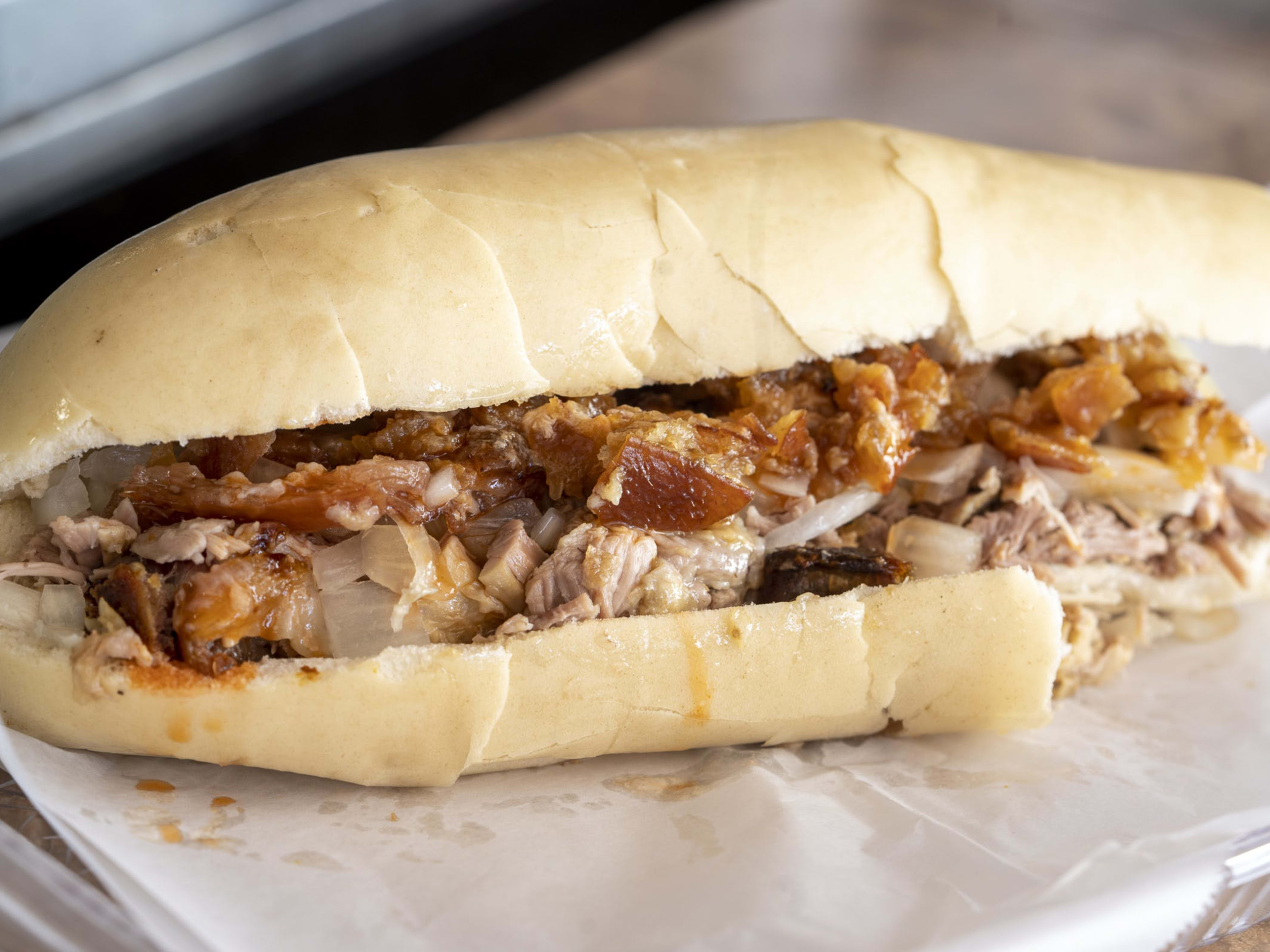 "The Meal: Pan Con Lechon, $8-10 Papo Llega Y Pon is a sandwich counter in Allapattah that serves a solid pan con lechon on cuban bread. The small size is just $8 while the bigger one is $10—and the small (about six inches, we’d guess) should be plenty for a quick lunch break. It’s a simple sandwich: lechon they chop up right in front of you, diced white onions, a little mojo, and hot sauce. Places like this are becoming harder and harder to find in the City of Miami, so pay them a visit and whisper “thank you” into your sandwich." - ryan pfeffer, virginia otazo, mariana trabanino
