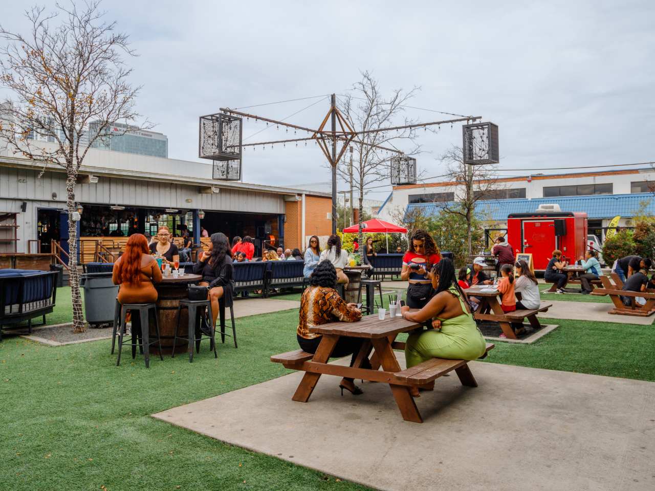 "When it’s time to see and, more importantly, be seen, the go-to spot is Chapman & Kirby, a bar and popular brunch spot in EaDo. On any given day, folks will be outside on the patio doing impromptu fit checks, with colorful cocktails in tow. Chapman & Kirby shares the massive patio space with a neighboring restaurant, but there’s still plenty of seating, so you can catch your best angle at a picnic table, casually lounge on the plush couches, or devour some glazed ribs at the high top tables. On the weekends— especially “Sunday Funday”— the patio is full of brunch warriors at every turn, so either make a reservation, or show up early to secure your seat on EaDo’s hottest runway." - gianni greene, chelsea thomas