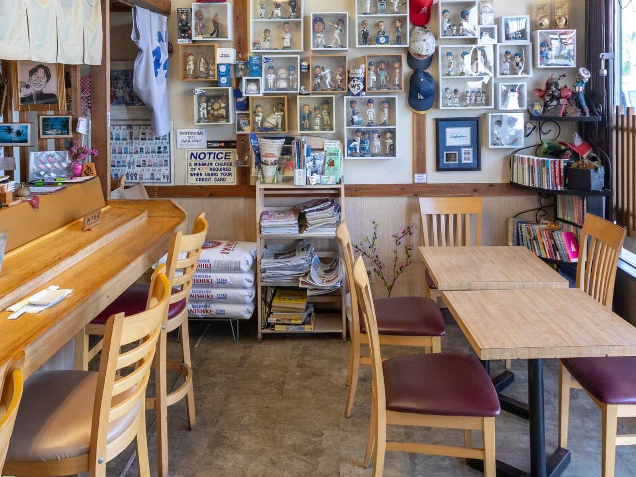 "This strip mall spot is a very good place for affordable sushi. Try to grab one of the five seats at the Dodger bobblehead-decorated bar and order the No. 8 Special. It involves nine pieces of sushi and two rolls, and at $13.50, it’s the most expensive thing on the menu. Add on an order of the fantastic, salty mirugai (giant geoduck clam) if they have it." - Brett Keating