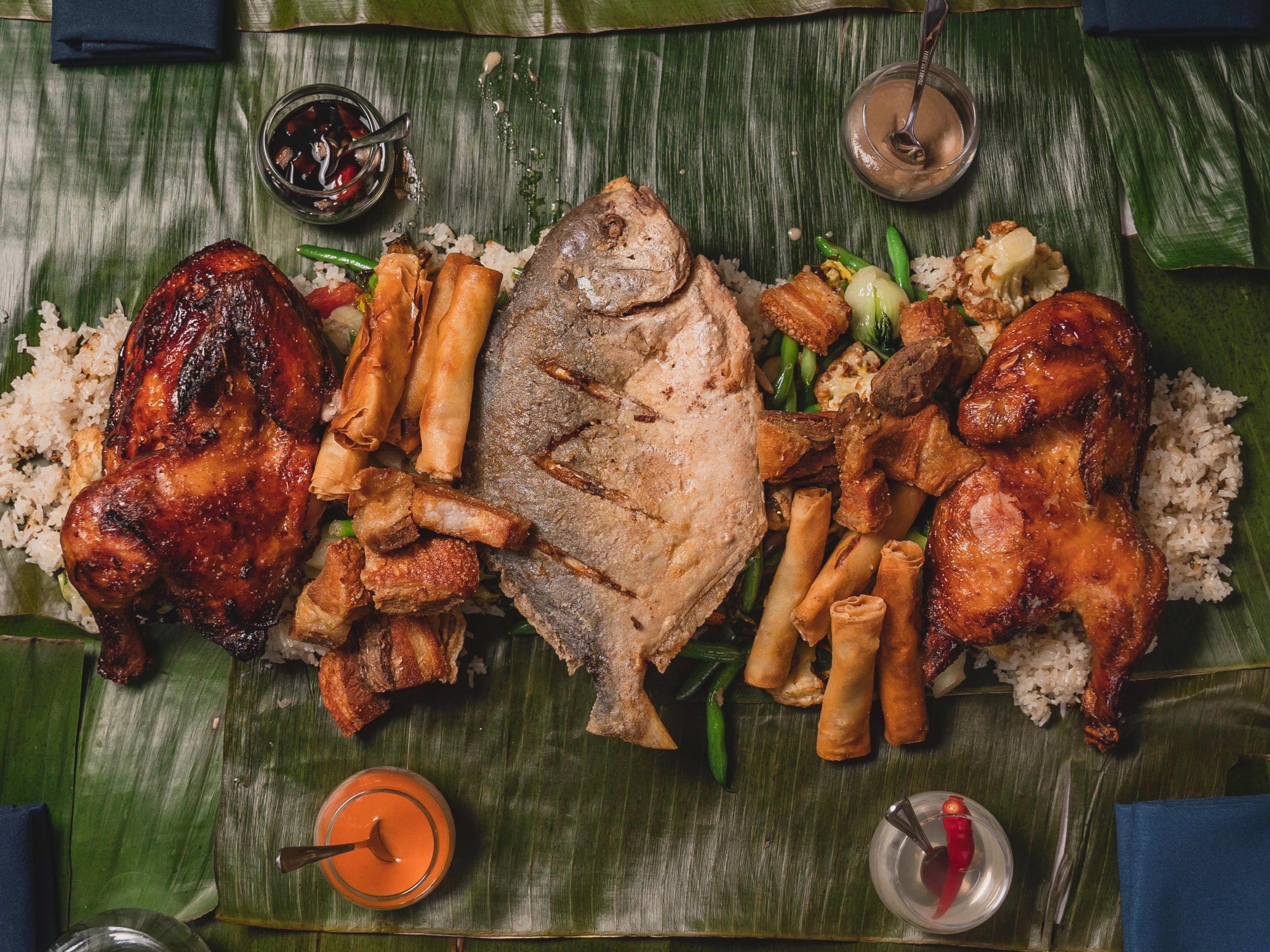 "When you want something other than Italian but are still looking for the same candlelit environment, head to Perla in Passyunk Square. Your kamayan meal easily feeds four people, so it can work for two or a double date with whomever your best friend is enamored with this week. The table is layered with a base of garlic jasmine rice followed by different proteins and vegetables, like pork belly, fried whole fish, and bok choy. Sort through the homemade sauces on the table to customize each bite, and decide if how they chew is a deal breaker." - candis mclean, alison kessler