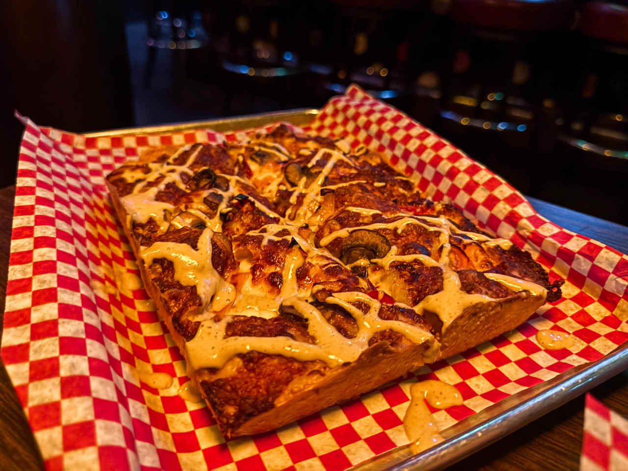 "Red Dwarf is a devilish dive bar also known for pizza. The rock ’n roll joint doubles as a tiki bar complete with glowing glass orbs, pufferfish lamps, and tropical drinks including a lip-puckering Dole whip. You’ll find it tucked in a tiny strip mall where hungry locals swill $4 Dwarf Piss—a local light blond lager that’s a class above PBR—and devour thick, rectangular Detroit-style pizzas. For the perfect sweet and spicy combination, try the Pineapple Does Belong on Pizza topped with brown sugar-glazed ham, jalapeños, and pineapple. The White Pie, however, was a bit dry with just a light drizzle of the garlic cream sauce. But that’s something you can debate with your new friends in the tight quarters of the zig-zagging, Tetris-shaped bar." - Ryan Slattery, Emmy Kasten