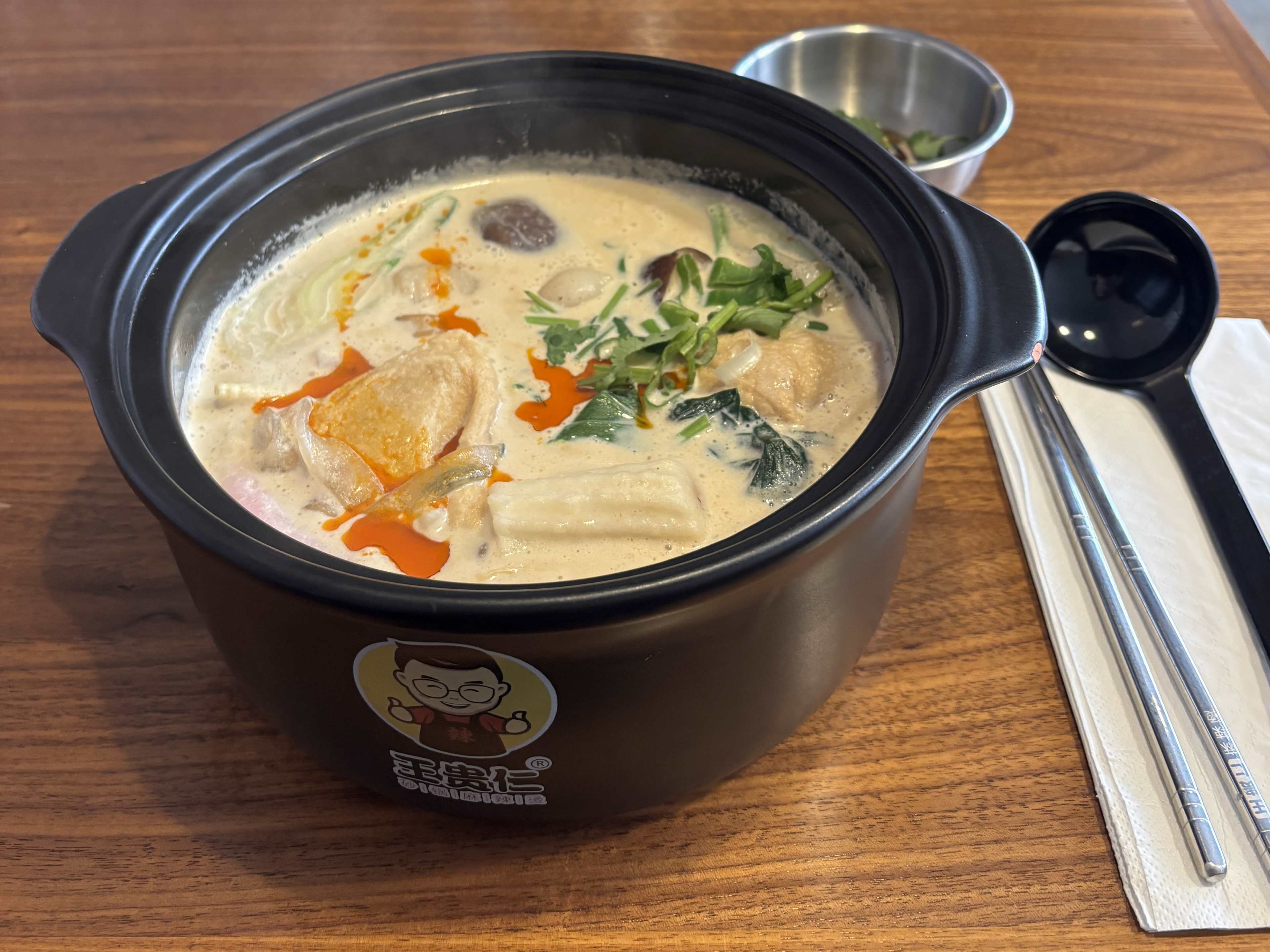 "Live out your Sichuan hot pot pick-and-mix fantasy at Mr Wang in Aldgate, a spick and span, neon-lit malatang machine. Grab a basket, load it with freshly prepped ingredients such as meats, greens, tofu, and noodles, and pay by weight. Know that the recommended amount is 400-500g per person. Choose a soup base: we like the creamy milky beef bone broth which is an excellent flavour absorber and packs so much depth. Then, hand over your basket, let the kitchen cook your perfect malatang, and while waiting, get busy crafting the dipping sauce. No double-dipping drama and no lost noodles, just customisable hot pot goodness exactly how you like it." - Angela Hui
