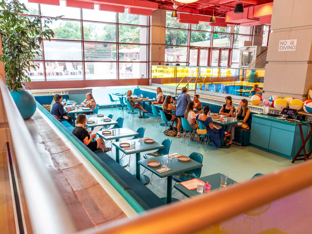 "Swim Club is the restaurant and bar attached to the pool at the Downright, a hotel that looks like Wes Anderson took a stab at renovating the former Sheraton near I-35 and 10th Street. There’s an overwhelming amount of pink: the tables, the chairs, the ceilings, the painted concrete around the outdoor pool, even the rubber duckies topping certain cocktails. A portion of the dining room is sunken, having once been an indoor pool. The whole place feels plucked from some ‘80s Miami Vice fever dream. It’s very cute, and you should probably check it out for the design alone—but not much else. photo credit: Richard Casteel photo credit: Richard Casteel photo credit: Richard Casteel photo credit: Richard Casteel photo credit: Richard Casteel Pause Unmute The drinks are light and refreshing but pretty forgettable outside of some appropriately playful garnishes, and the food is a microscopic step up from what you’d find in the freezer aisle at H-E-B. The wings are dry and crumbly, the burger patties seem like they were ice-cold pucks just moments before, and the ceviche pairs a few chunks of floppy fish with a broth that tastes like bland tomato water. Swim Club is clearly styled for bachelorette parties and social media photo ops, somewhere to drink spiked seltzers by the pool on a Saturday afternoon. Order fries for sustenance (they’re satisfyingly crispy), but get a full meal elsewhere. Food Rundown Watermelon Salad This is the dish to get if you find yourself at Swim Club. It’s light and refreshing, and a touch of white balsamic adds just the right amount of acidity to the sweet watermelon. photo credit: Richard Casteel Pizza If you need something more substantial than watermelon to soak up the drinks you’re having by the pool, get the pizza. It’s the best thing on the hot menu—we like the Questionable Morels, which comes topped with mushrooms (but not morels) and a little too much truffle oil. photo credit: Nicolai McCrary Ceviche The ceviche is served at room temperature, the fish is soggy, the avocados are brown, and it’s all swimming in a shallow pool of bland tomato water. Avoid this at all costs. photo credit: Nicolai McCrary Wings These have the consistency of wings that have been baked a little too long, leaving them dry and crumbly. The buffalo ranch they’re served with is nice and tangy, but we can’t really make a meal out of ranch dressing. photo credit: Richard Casteel Burger The buns are soggy and the patty is dense and underseasoned—it tastes like a generic, pre-formed frozen burger patty. The fries it comes served with are nice and crispy though. photo credit: Nicolai McCrary" - Nicolai McCrary
