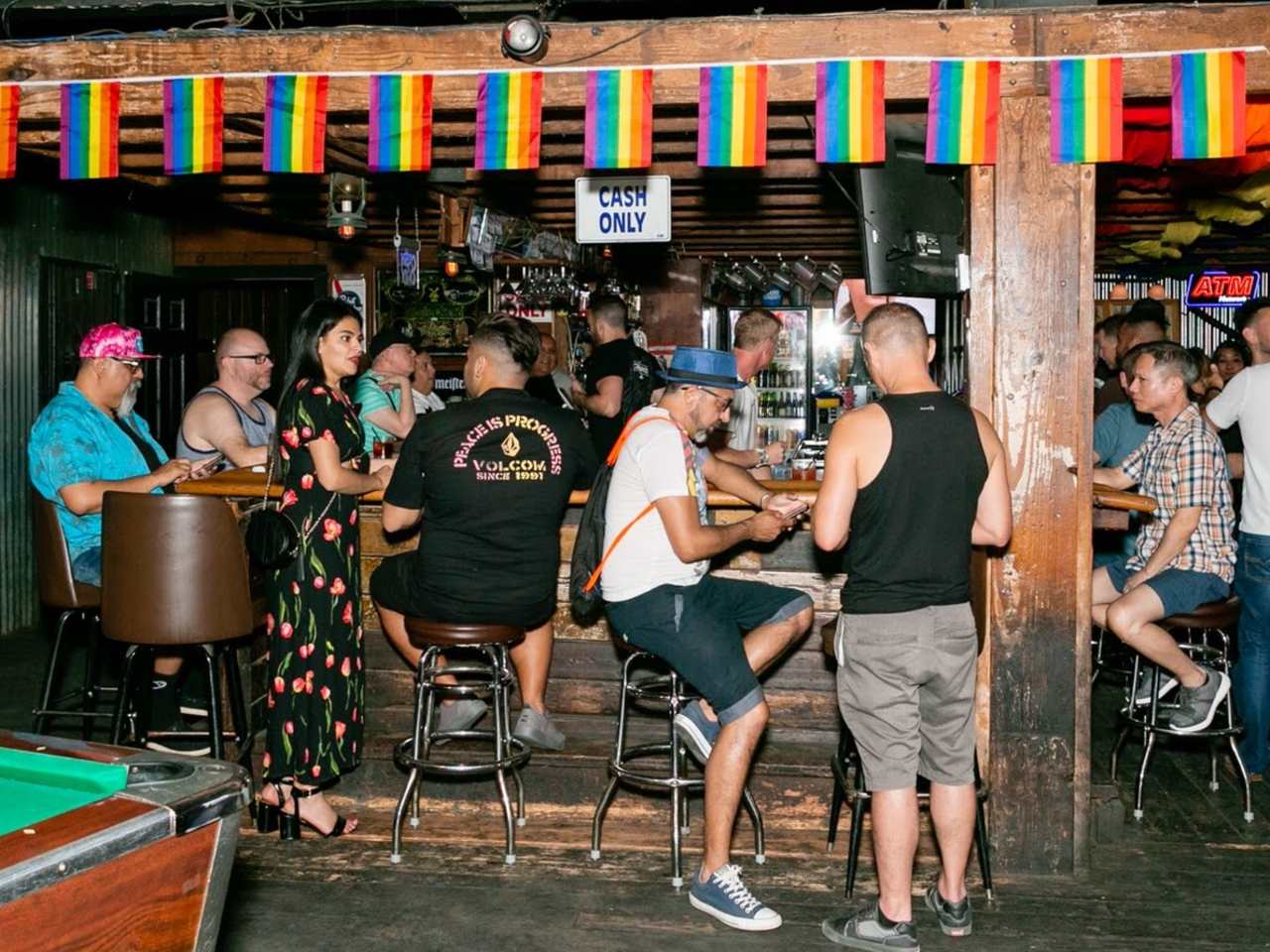 "Mineshaft is one of the oldest gay bars in Long Beach, and it’s still a central mingling spot for the neighborhood. On weeknights, you might find some locals hanging out around the pool table, chugging beers and snacking on mozzarella sticks. But on weekends, The Mineshaft feels a bit like a buzzy nightclub—the DJ plays classic Top 40 hits, the room gets packed, and most people end up dancing with a stranger. If you’re looking for new connections, there’s a good chance you’ll make friends here—just remember to bring cash." - brant cox, nikko duren