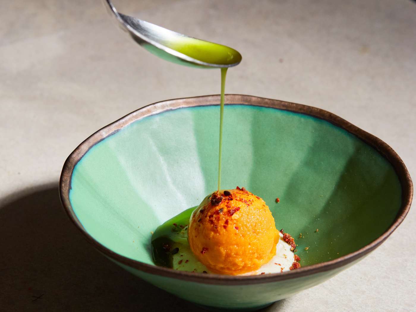 "Why do Mumbaiites go wild for the seasonal ₹6,872, 10-course tasting menu at Masque? It’s an experience—one that begins the moment you step into the elegant dining room housed in a former textile mill. The pendant lamps hanging from the high ceiling, the lab-like, glowing bar, and the metal sculpture rising from the floor (inspired by the Mahalaxmi and Parel skylines) create the perfect setting to impress a date, celebrate, or listen to your server tell stories about all the locally sourced or foraged produce you’re about to consume. The themed menu could be inspired by a region, season, or way of cooking, like a Kashmiri winter or Jodhpur’s khad cooking. Either way, wonders will emerge from the kitchen, like a dal dhokli-inspired duck ravioli or a koji-fermented dosa with smoked pork gassi. Book a week in advance or further ahead for weekend tables." - roshni bajaj sanghvi