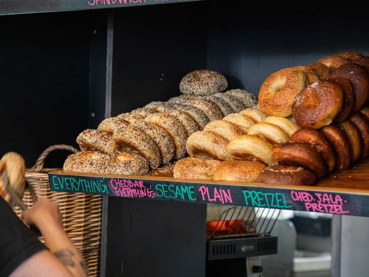 "The super bready bagels at Northern Liberties' The Kettle Black are the best in the neighborhood. There’s no pre-ordering here, and you’ll usually find six daily options like everything, sesame, pretzel, cheddar jalapeno pretzel, with specials like spinach and artichoke. It’s a great place to pick your favorite bagel and get it topped with salmon cream cheese, tomatoes, onions, and capers, and some vegan-friendly options like house-made vegan lox. And since we all love unique takes and colored bread (looking at you, rainbow bagel hive), go for at least one slightly sweet and nutty black sesame bagel when you can. It’s deep space dark (which makes the sesame seeds the stars), delicious, and just super cool to look at. " - candis mclean, alison kessler