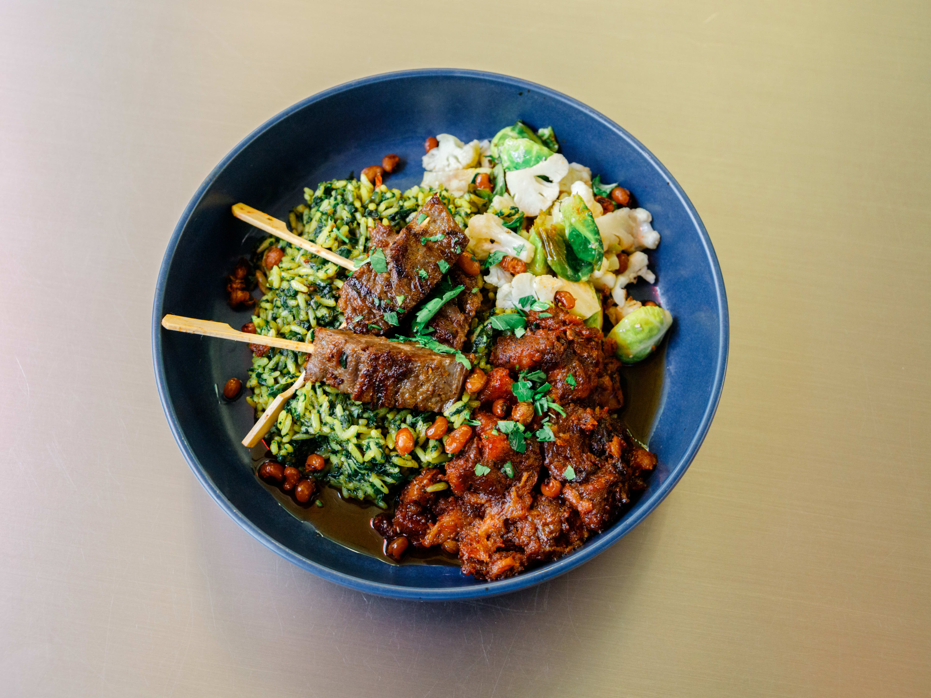 "Don’t let the long line in front of ChopNBlok fool you, you’ll be at the counter ordering in no time at the front of the stylish counter. The fast-casual West African spot in the Post Market food hall specializes in bowls that combine flavors from around the continent. Get a Trad bowl with smoky jollof rice and sweet caramelized kelewele, or just get a few orders of minnie beef pies and celebrate the Astros in the food court. How to get there: Drive (eight minutes) or take a pedicab (eight minutes)" - chelsea thomas, gianni greene