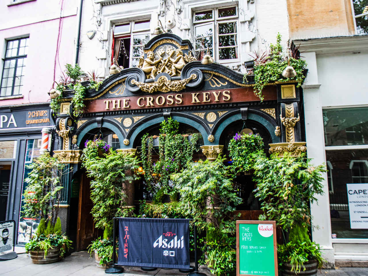 "There’s a reason that The Cross Keys is so often the trusted pin drop on the group WhatsApp when meeting in central. The Covent Garden pub is easily walked past, or equally identified, by its foliage-covered exterior and the happy mass of people drinking outside. Step in and you’ll find a maroon-toned, carpeted, and knickknack-filled boozer of the most quintessentially British variety. After work you’ll be lucky to squeeze through to the bar but, time it well or rely on lady luck and you can pitch up for a few of the cosiest pints you can get in the West End. " - Jake Missing