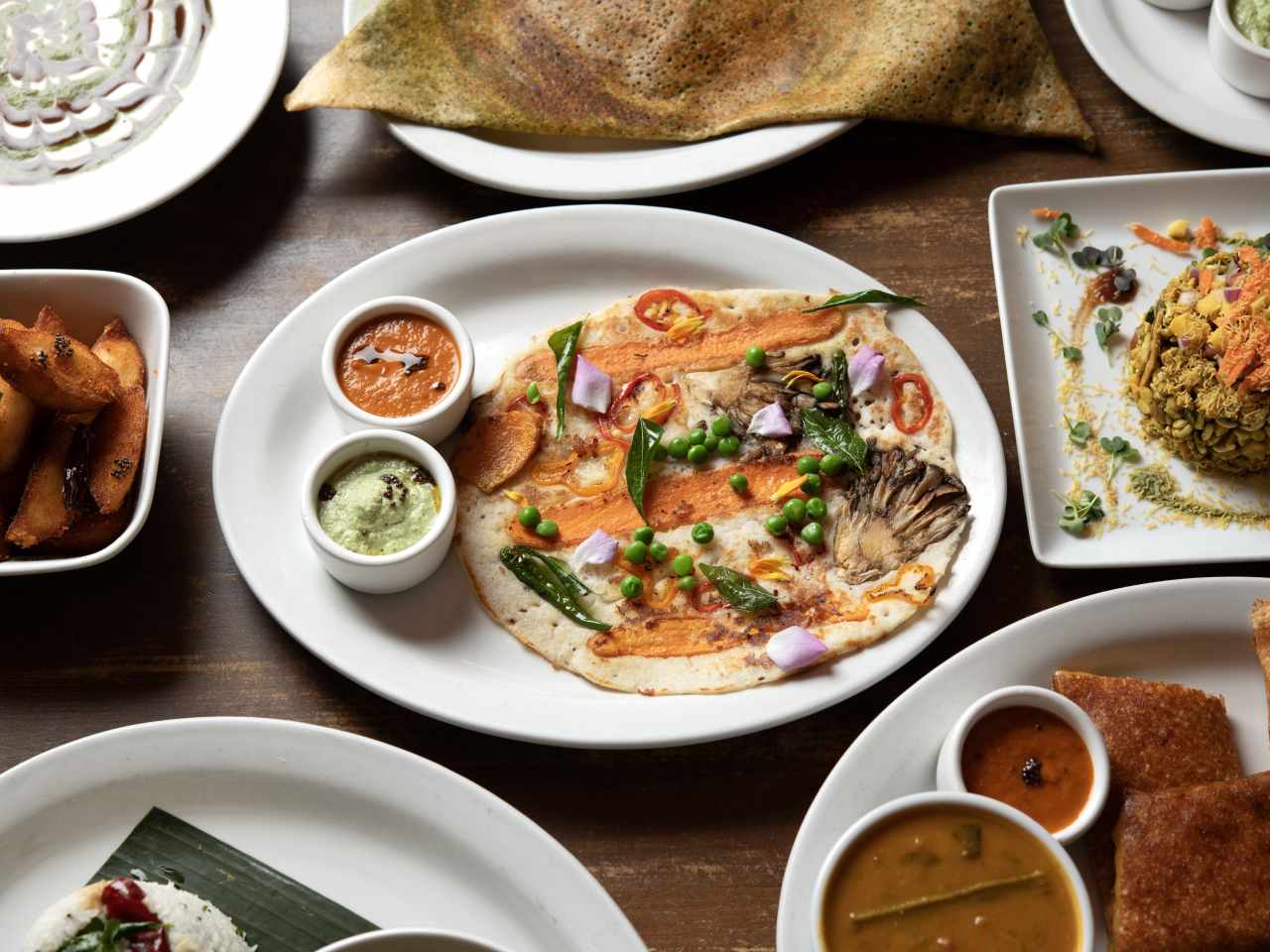 "There are some great options for Indian food across town, and we like eating at Paper Dosa best. Come by this neighborhood joint with a group of friends, slide into one of their plush orange booths, gaze up at the hanging floral arrangement, and try as many of their artfully-plated dosas as possible. They arrive to tables perfectly crisp and mesmerizingly-golden. Our go-tos are the white truffle masala because it’s garlicky without being overwhelming, and the spicy basil that has a nice mix of herbs and texture from the cashew filling and potato masala topping. We also love that the flavor-packed chutneys and sambar filled with a generous amount of vegetables are given the same amount of care." - Nina Katz